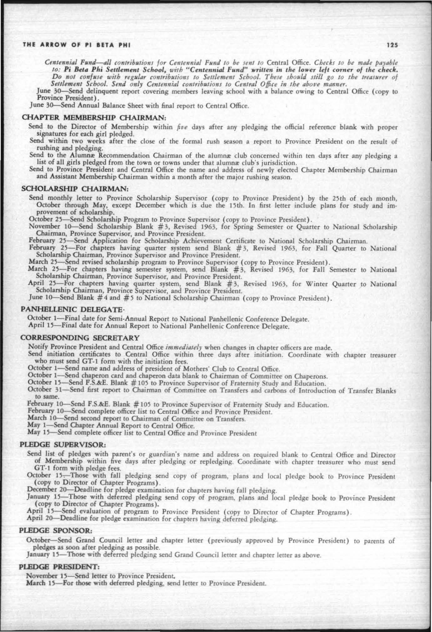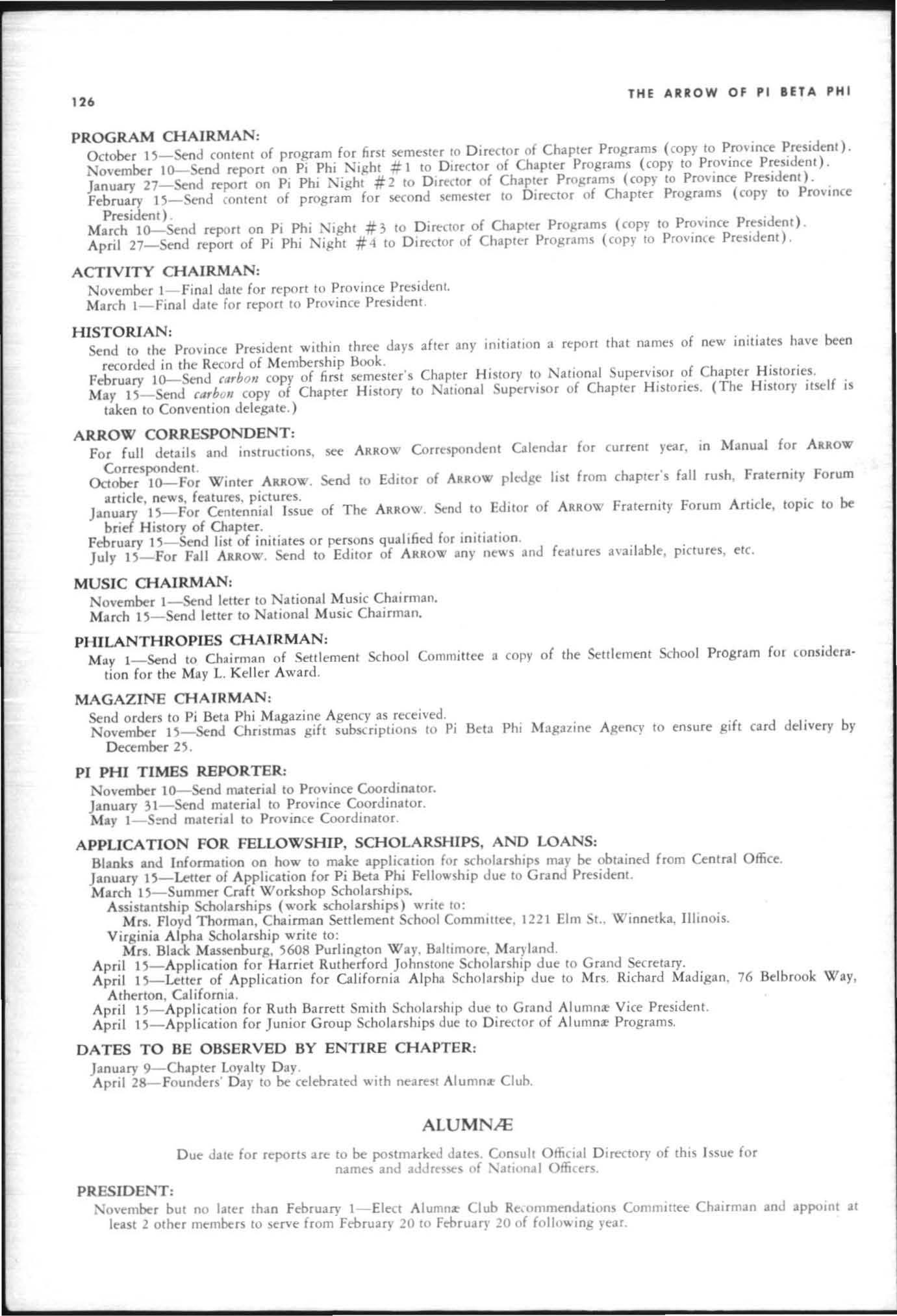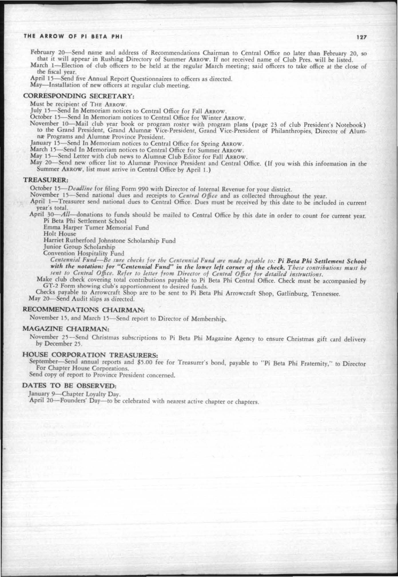 M ay 20-Send new officer list to Alumna' Province President and Central Office. (I( you wis h this information i n the Summer ARROW, list must in Ce ntra l Office by A pril I. )