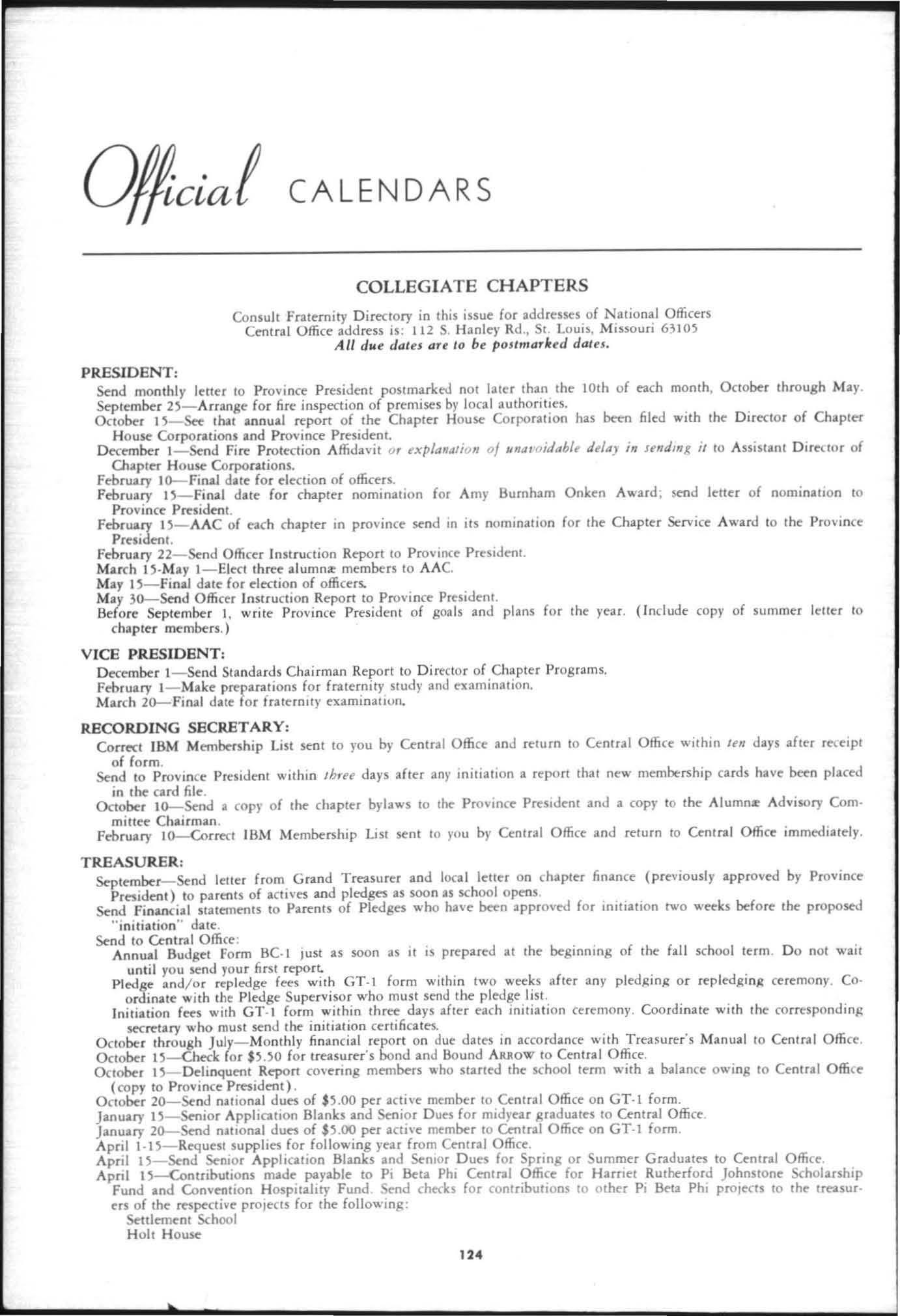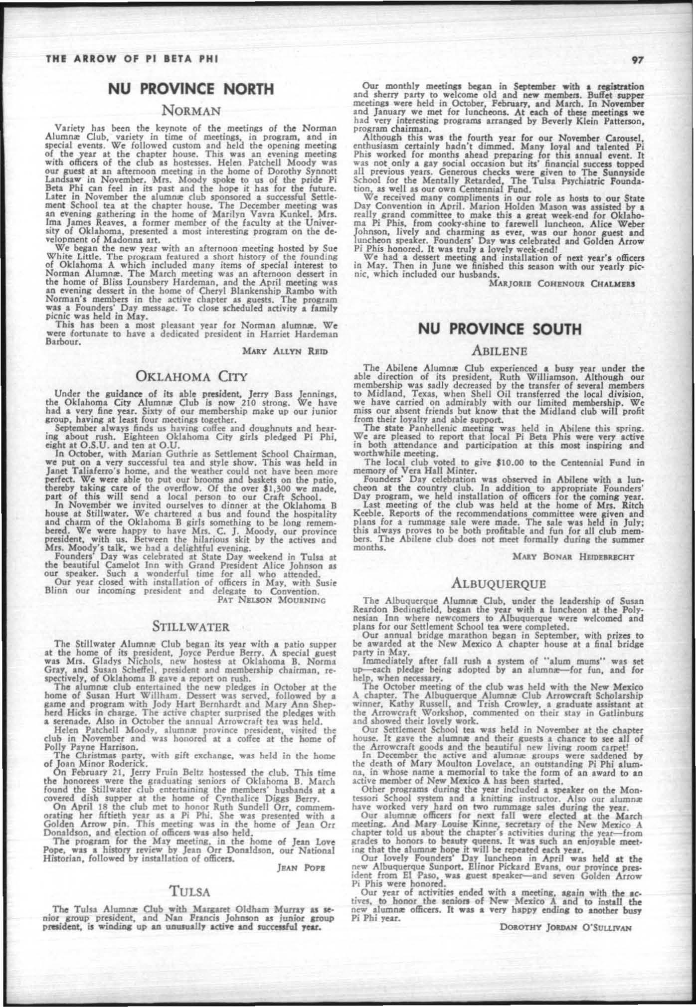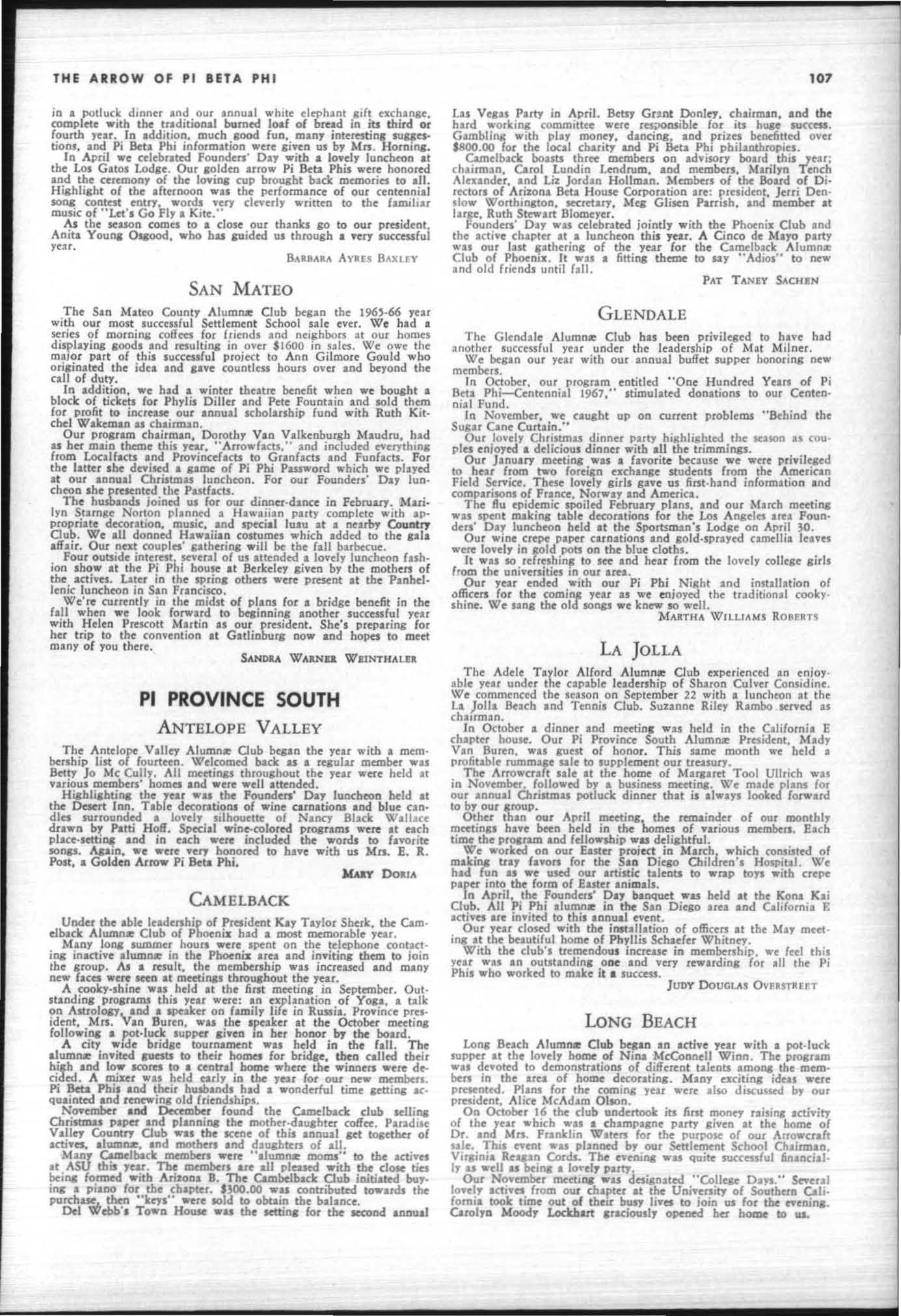 M ay 20-Send new officer list to Alumna' Province President and Central Office. (I( you wis h this information i n the Summer ARROW, list must in Ce ntra l Office by A pril I. )
