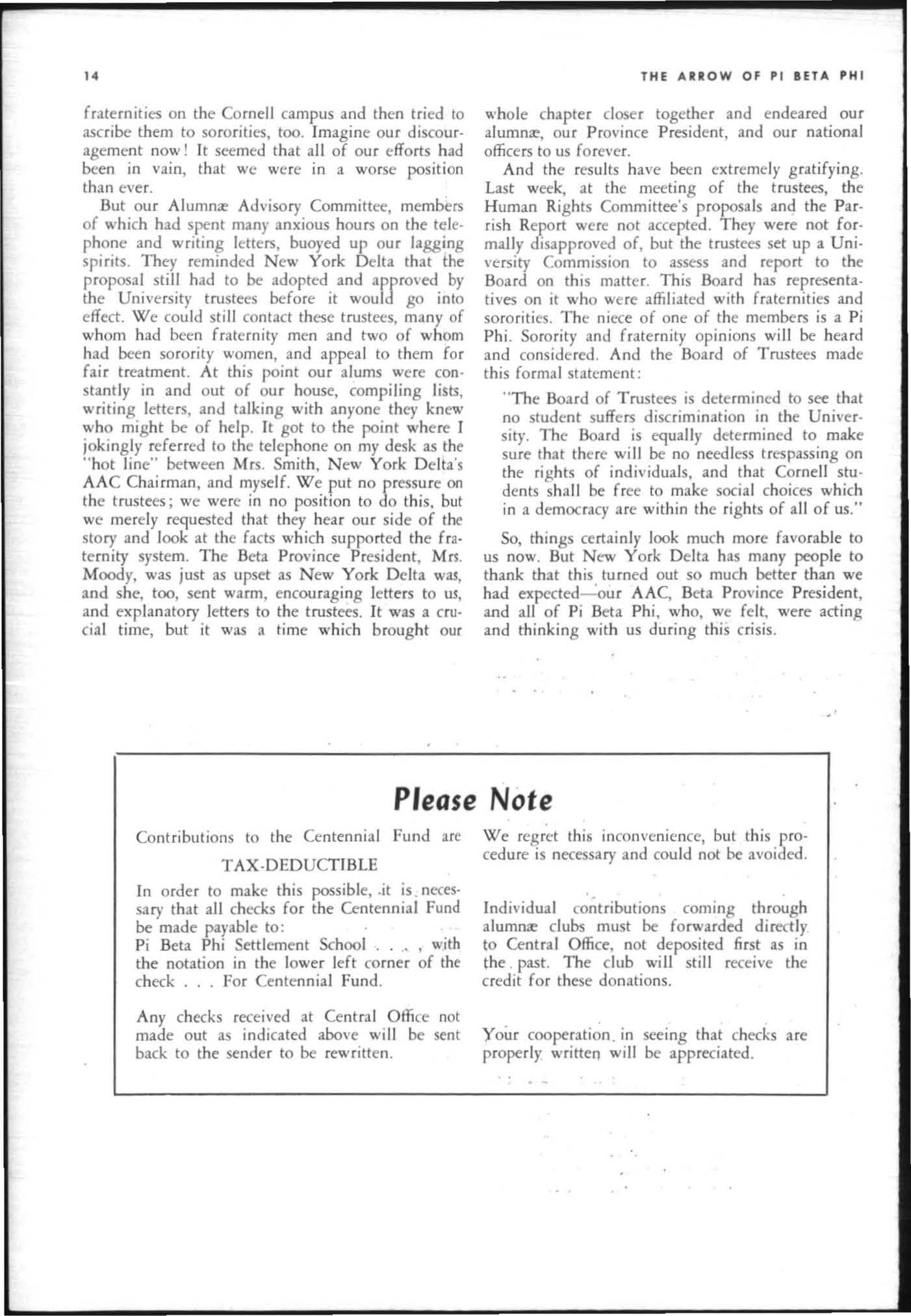 Centennial FlUId-Be Ilire lor the Centennial FMnd Me m(lde paJQble t o: Pi Betd Phi Settlem ent School with th e "ottlt;O": lor " C e"tem';dl Fund" in th e l o we r lelt cOrrl e r 01 the ch ec k, These ronlribllJionJ ",1IJ1 be Jent 10 Central Offire. ReIer 10 leller Iro m DiruJ or 01 Ce1lJral Olfire for de/ailed i IlJlr"rlio'l.f.