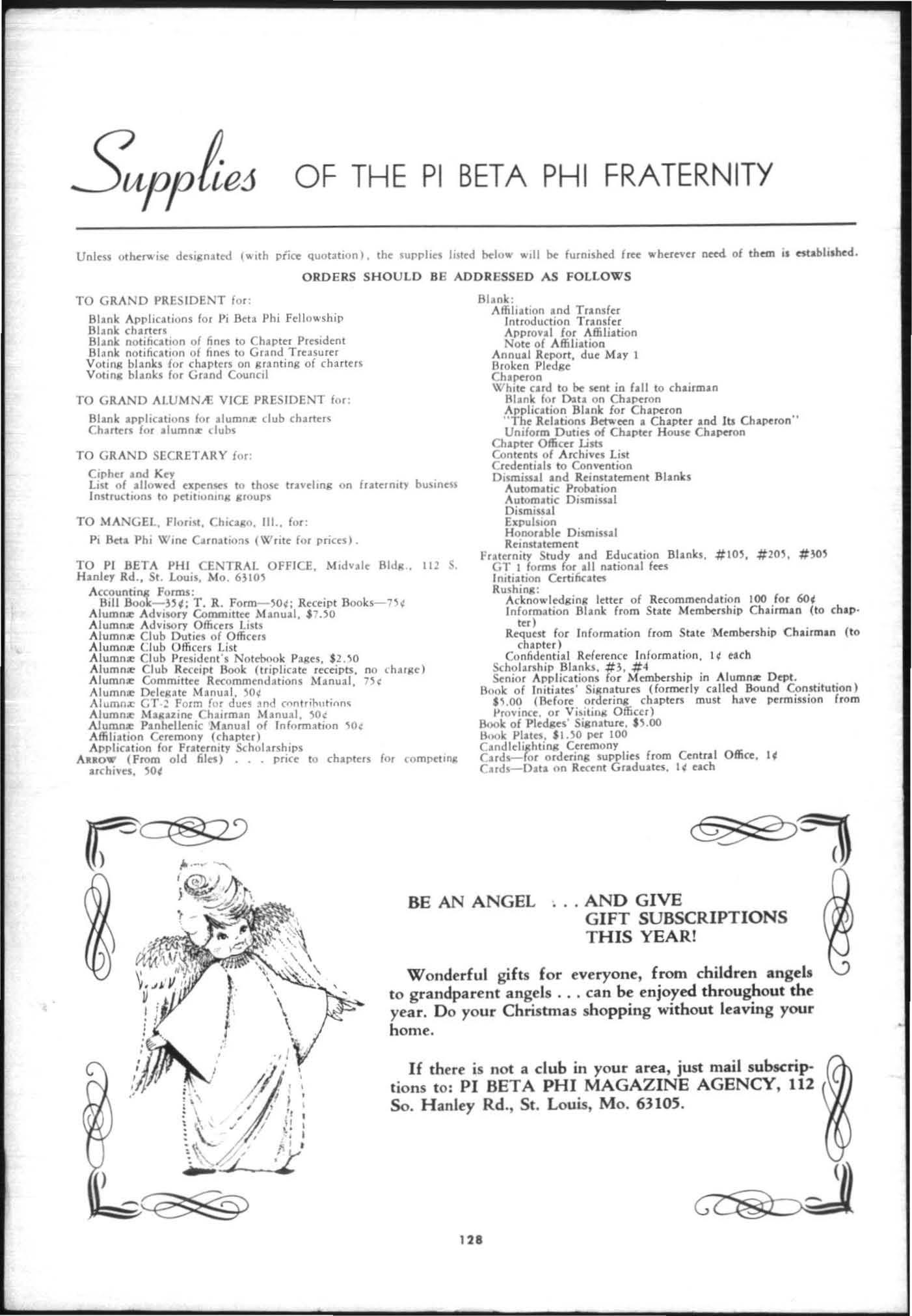 G.Stnd subscription c haJ'IMe of address notice Ind correspondence of • bwinnl n.ture to Pi Bet. Pbi Central Office 112 S H.nley Rd • St Louis. Mo. 6)10'.