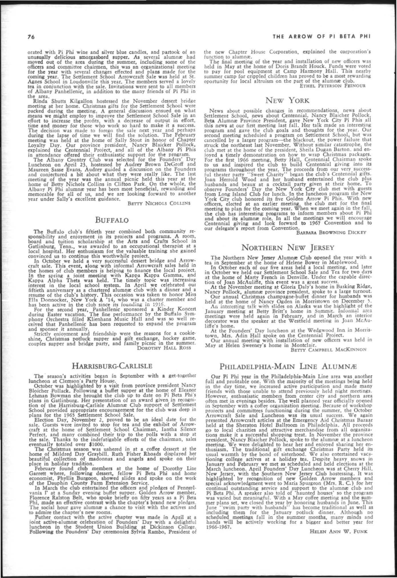 Prom Pi Phi P'III : MARy ELIZABETH lAsHER BAINElTII (Mn Kenntth A ) , 8 Cloister Ct., Tonawanda, N .Y.