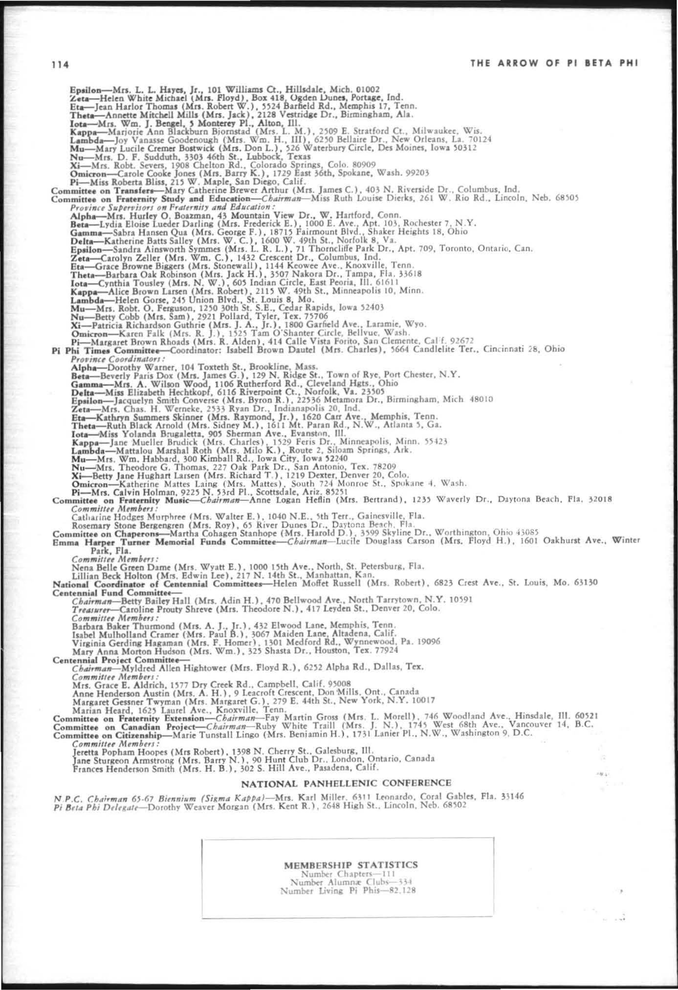 THE ARROW Information Bulletin is an esoteric publication of Pi Beta Phi Fraternity It is issued annually in September. It contains reports of Convention minutes, Grand Council meet· ings, national o fficers , committees and any other pertinent report.