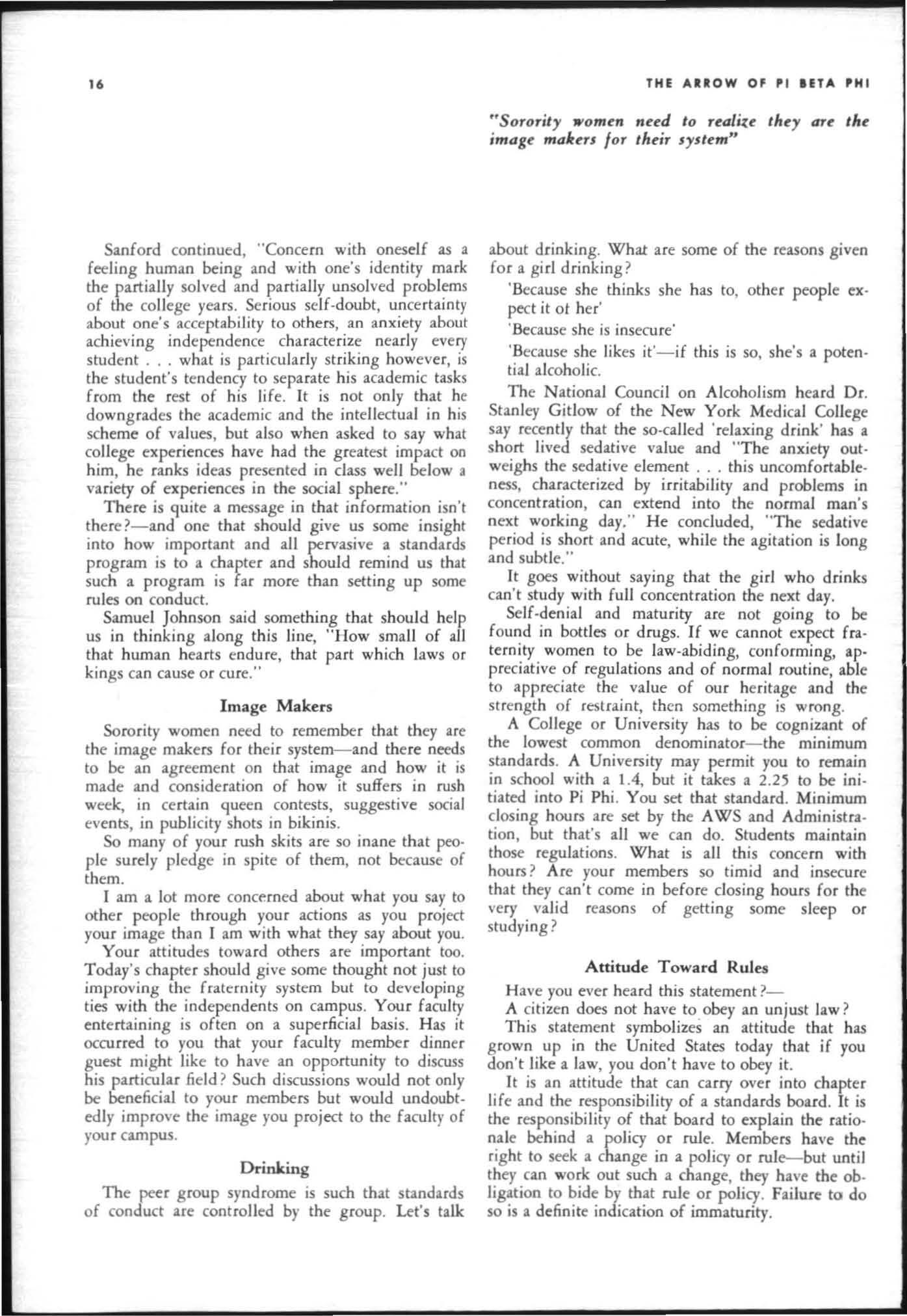 "On e of the most rewarding aspects of national fraternity se rvice is the opportunity to know a nd work with the many fine women who devote their time and talents to the fraternity system. Among such women, Adele Al ford was a shining example.