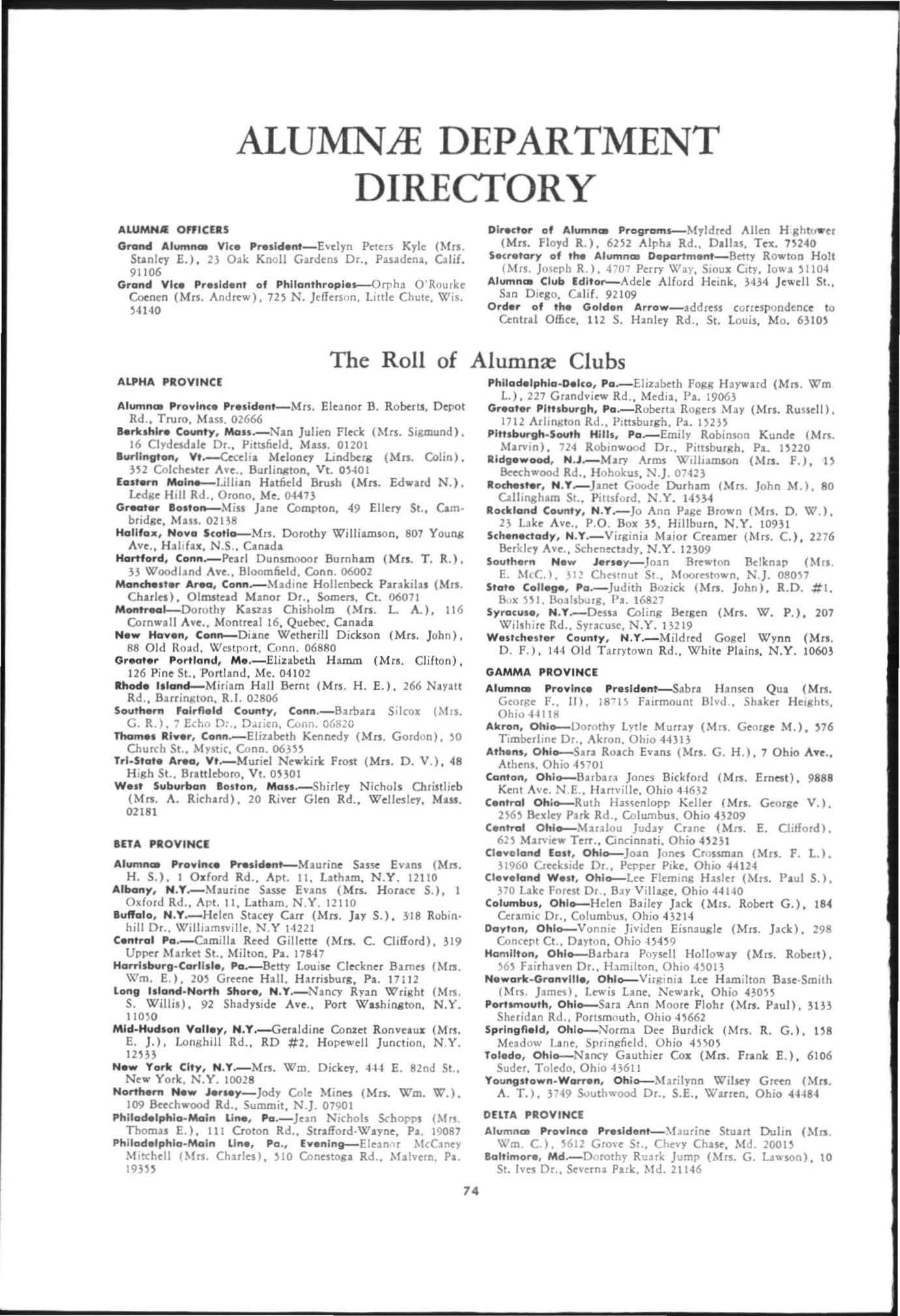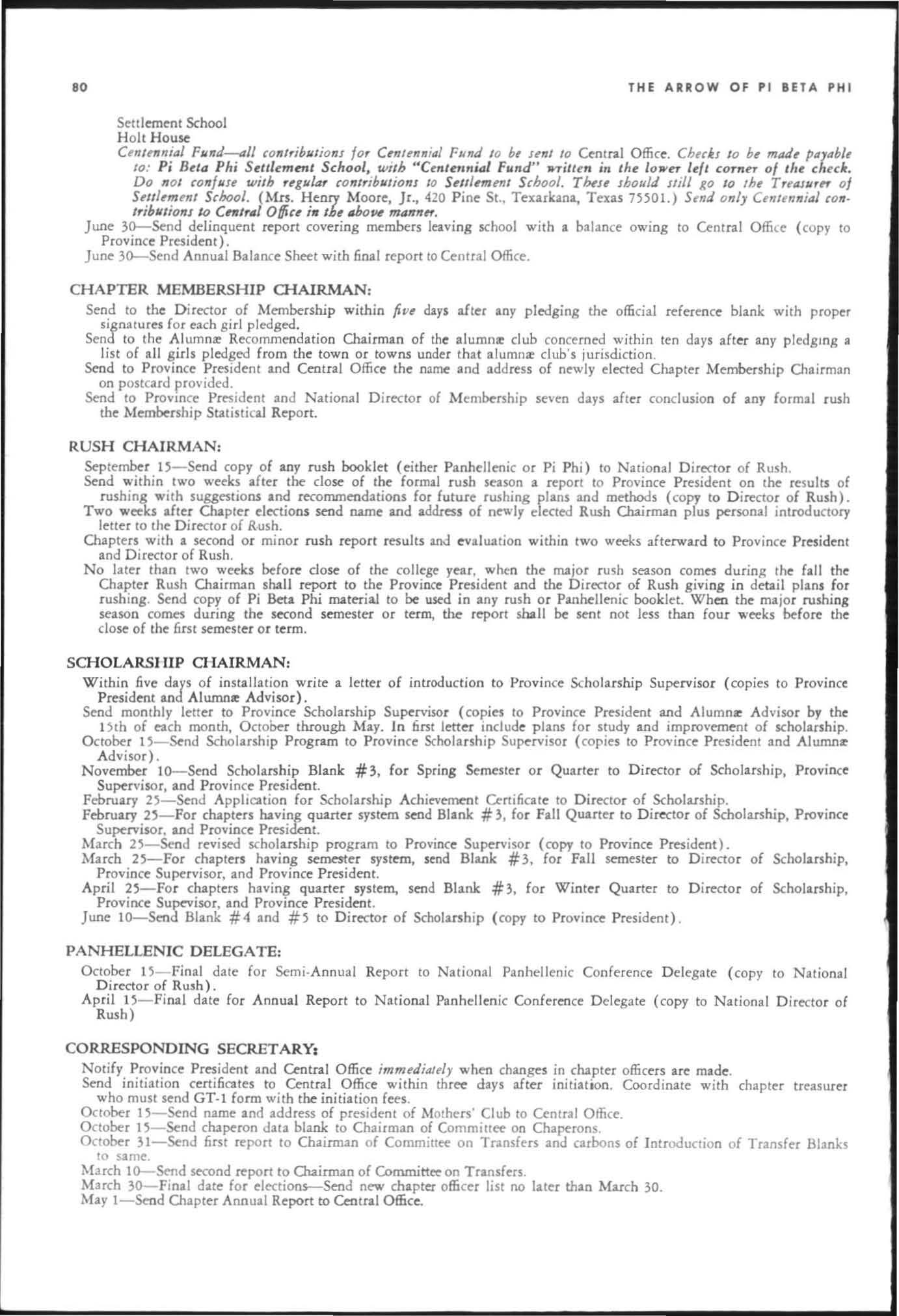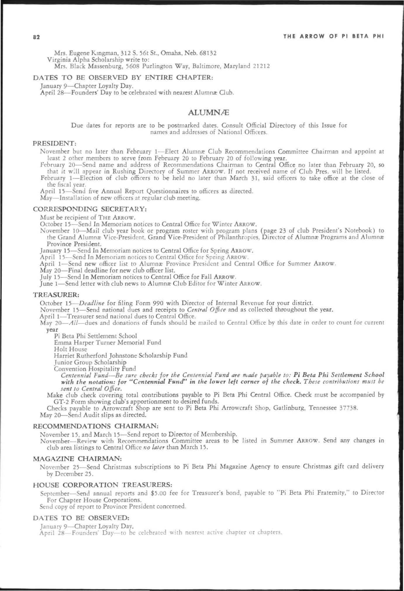 April I-Send new officer list to Alumnre Province Presid e nt :Hld Ce ntral Office for Summer ARROW