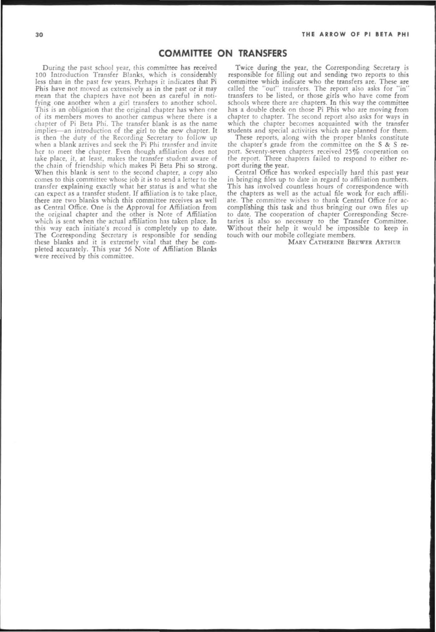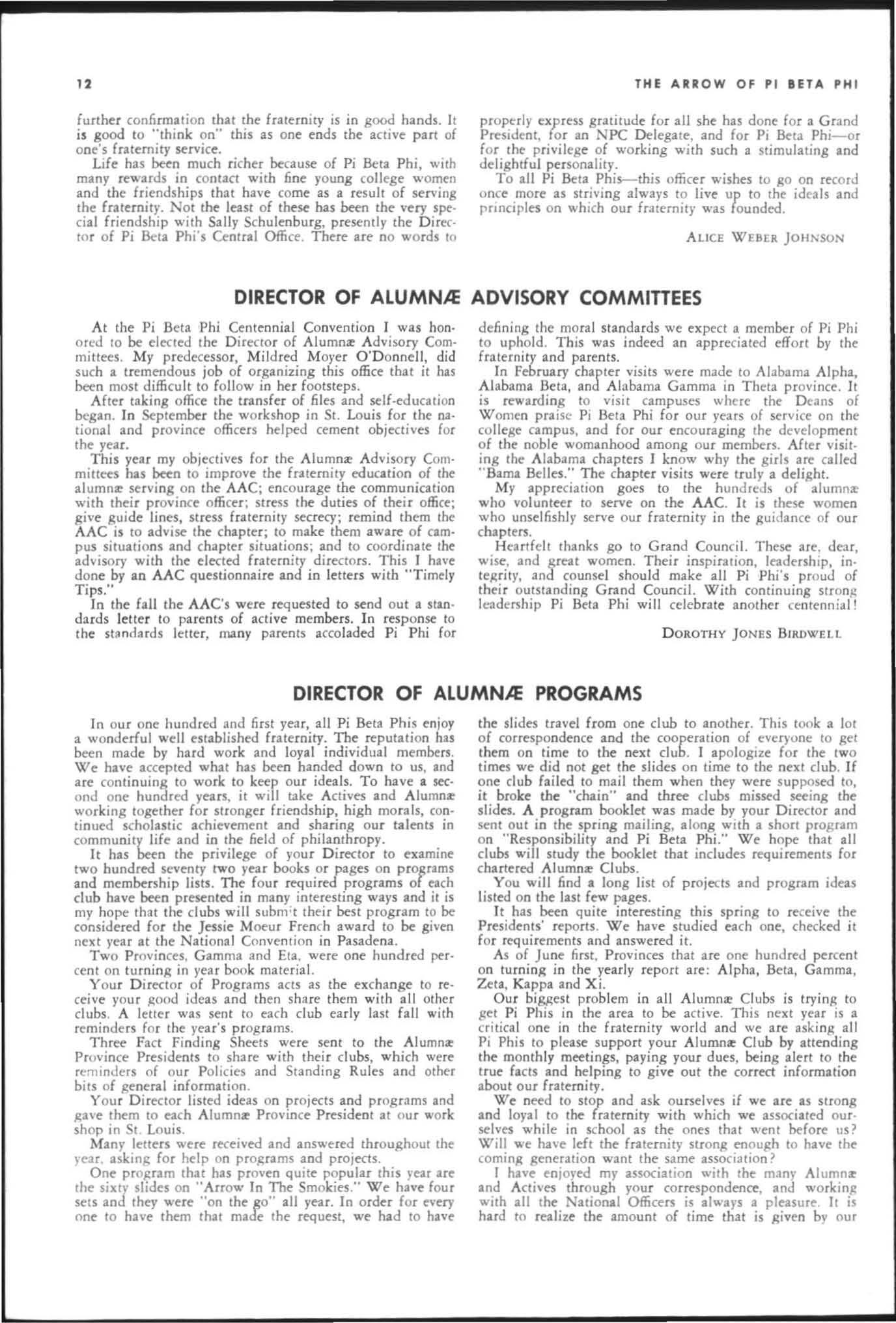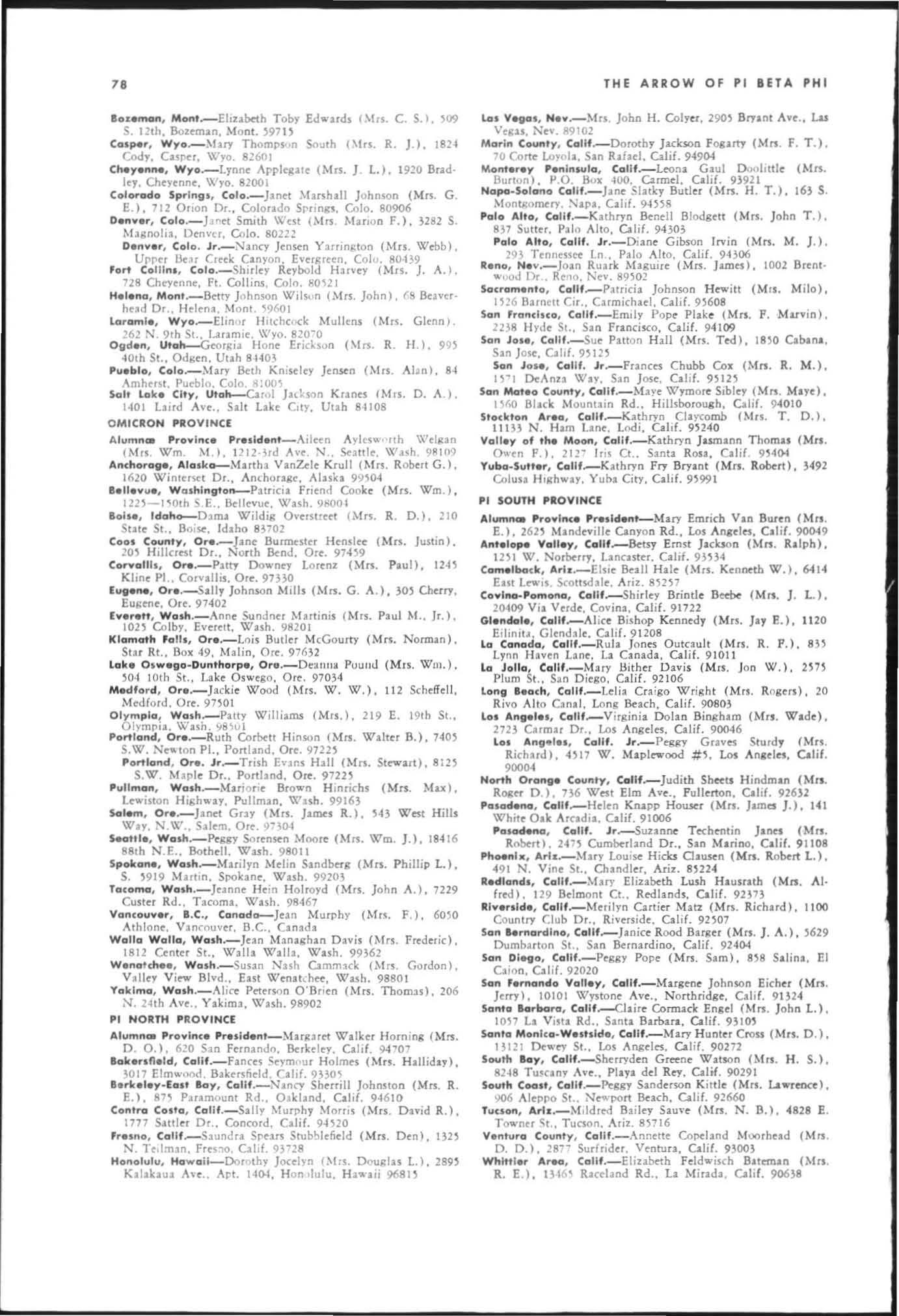 G.THB Aaaow IS printed f.lI. Winter. Sprltt, IOd Summer b), Pi Bet. Pbi fraternity It the press of Georae Banta Complny, Jnc , CurtiS R«d PlIII , Menasha. Wis SubscriPtion price is ' 1 '0 a )'tlr, ,0. for sinlle to p,n, '15 00 fOf life subscriptio n G.5e'nd subJ("riPtioru. chance of address notice, and corfHPOndence of I business nlture to Pi Beta Ph i Centr.1 Office. tl2 S. H.nlcy Rd ., St Louis, Mo 6 HO' G. Corrcspoodmce of In editorial n. tu re is to be addre$SCd to the edit o r. Mrs. W. W. ford, Jr 268 Under · -nod Dr.• NW At bnta, G •. lOl28. Itc-ms for publintio n should be .ddres.scd to tbe tdllor to amve not IaltT Iban October I, J.nua,.,. I, Match U ClMembn of FUl et oit)' Mlfaz.incs Auocilled All m.lter, pertalOlD1 10 nat iona l .d vet1" .n " should be duuttd to Fraternity Ma&az.lnes Associ.ted, 1'8' Rid.Je Avenue. E nston, III. «lSccond cI.ss postage paid It St. louis , Missouri ••nd It additional mailil1& office. Printed in the United States of America