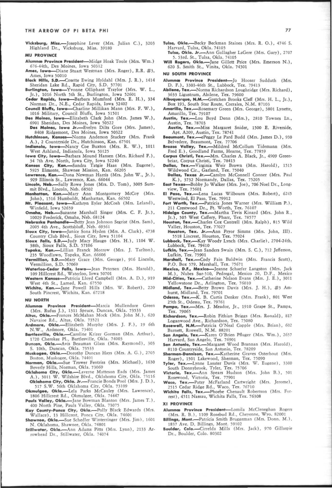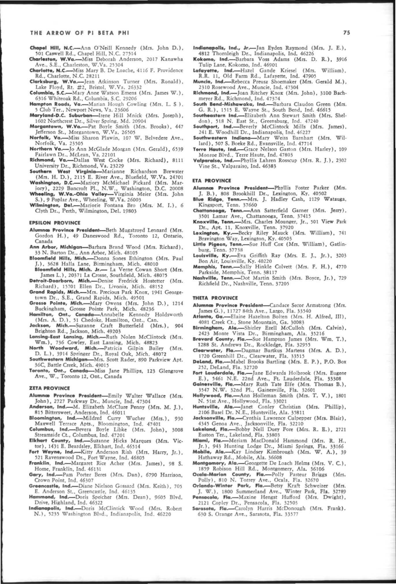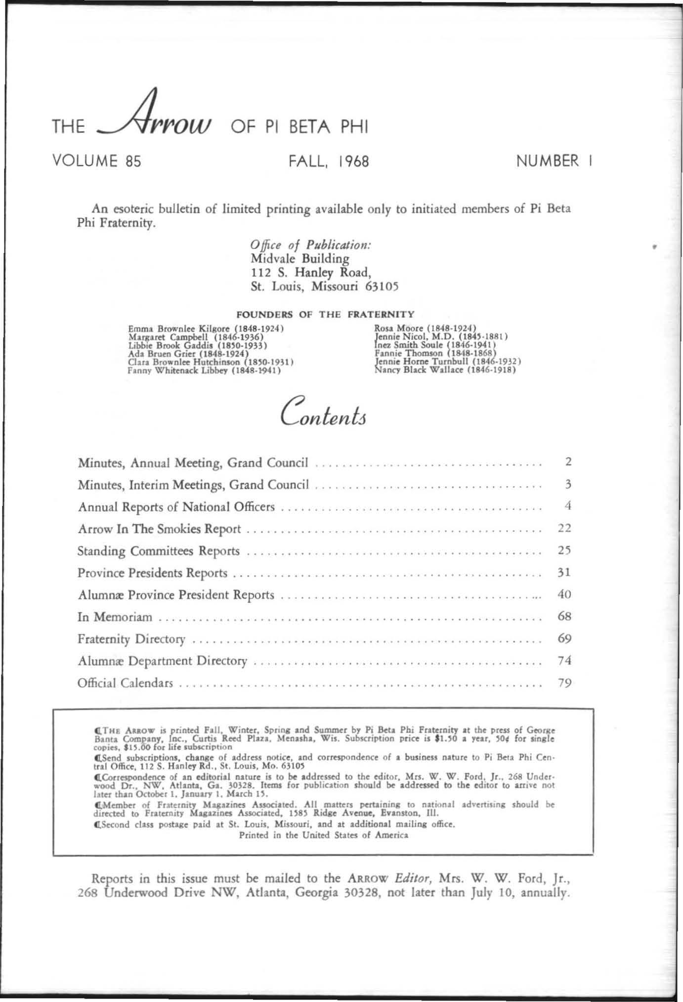Reports in this issue must be mailed to the ARROW Edit or, Mrs . W. W. Ford, J r. , 268 Underwood Drive NW, Atlanta, Georgia 30328, not late r lhan July 10, annually