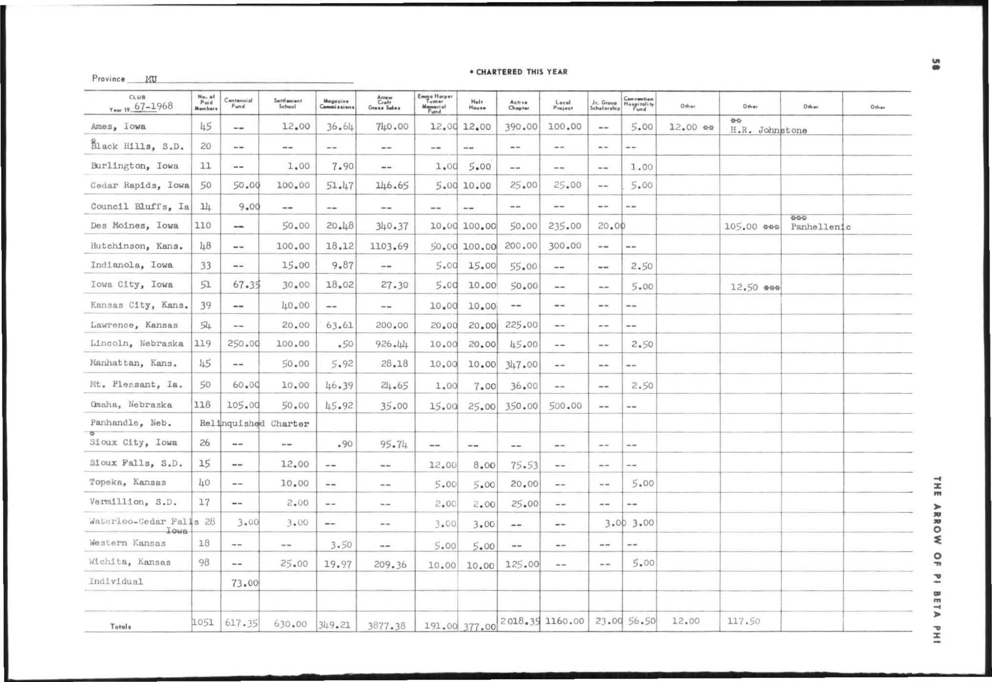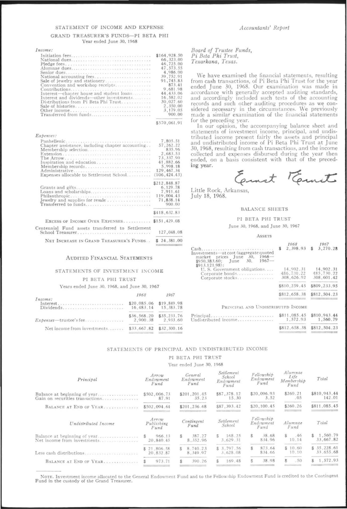 Total initiates for the year 1967 ·68