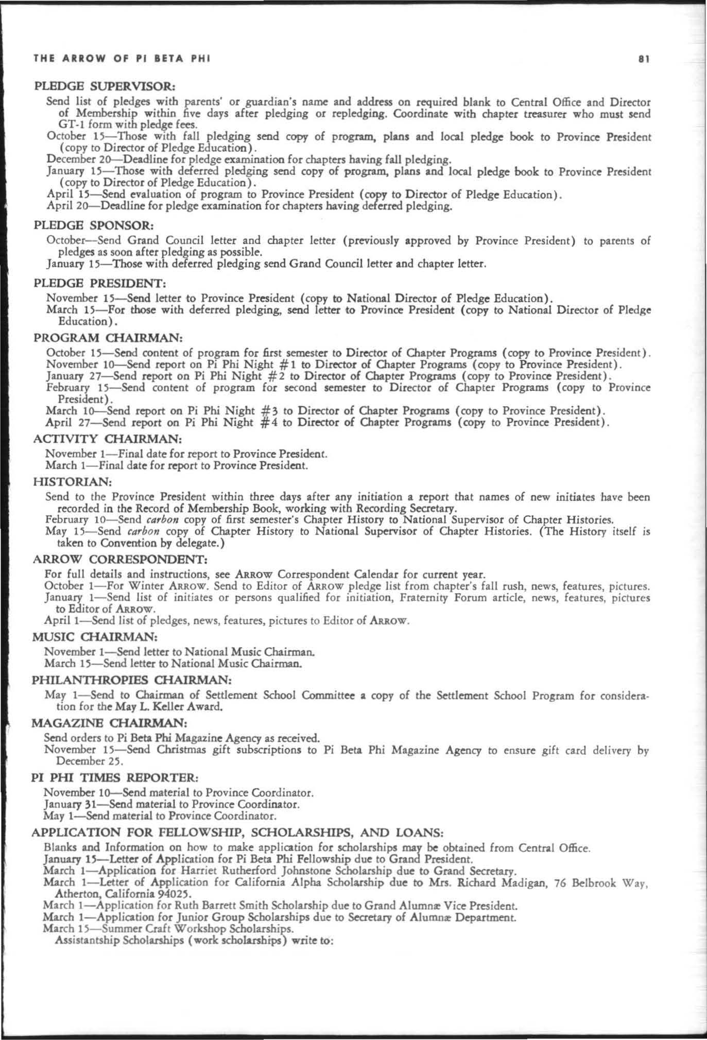January I5-Those with deferred pledging send copy of program. plans and local pledge book to Province President (copy to Director of Pledge Edu cation).