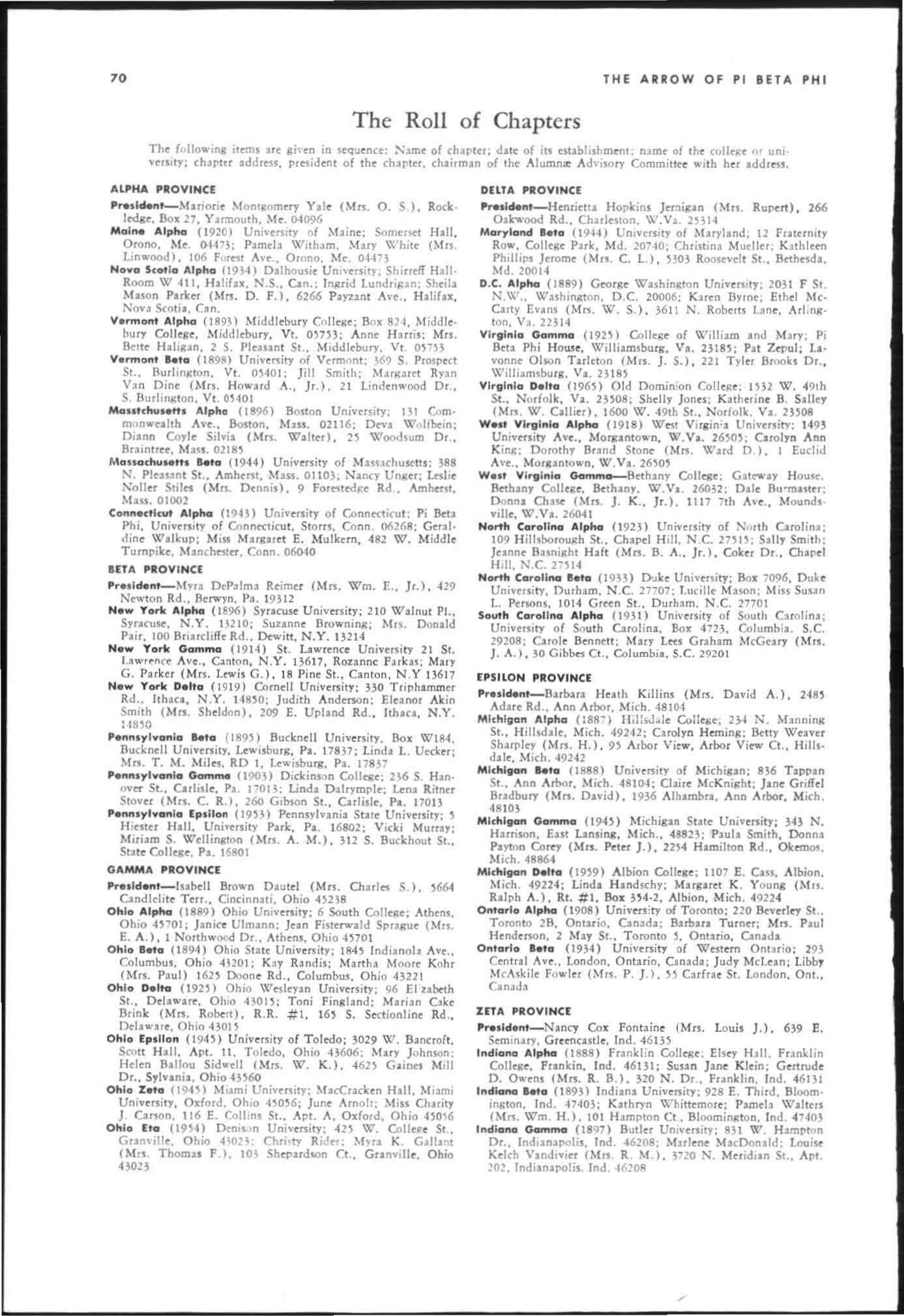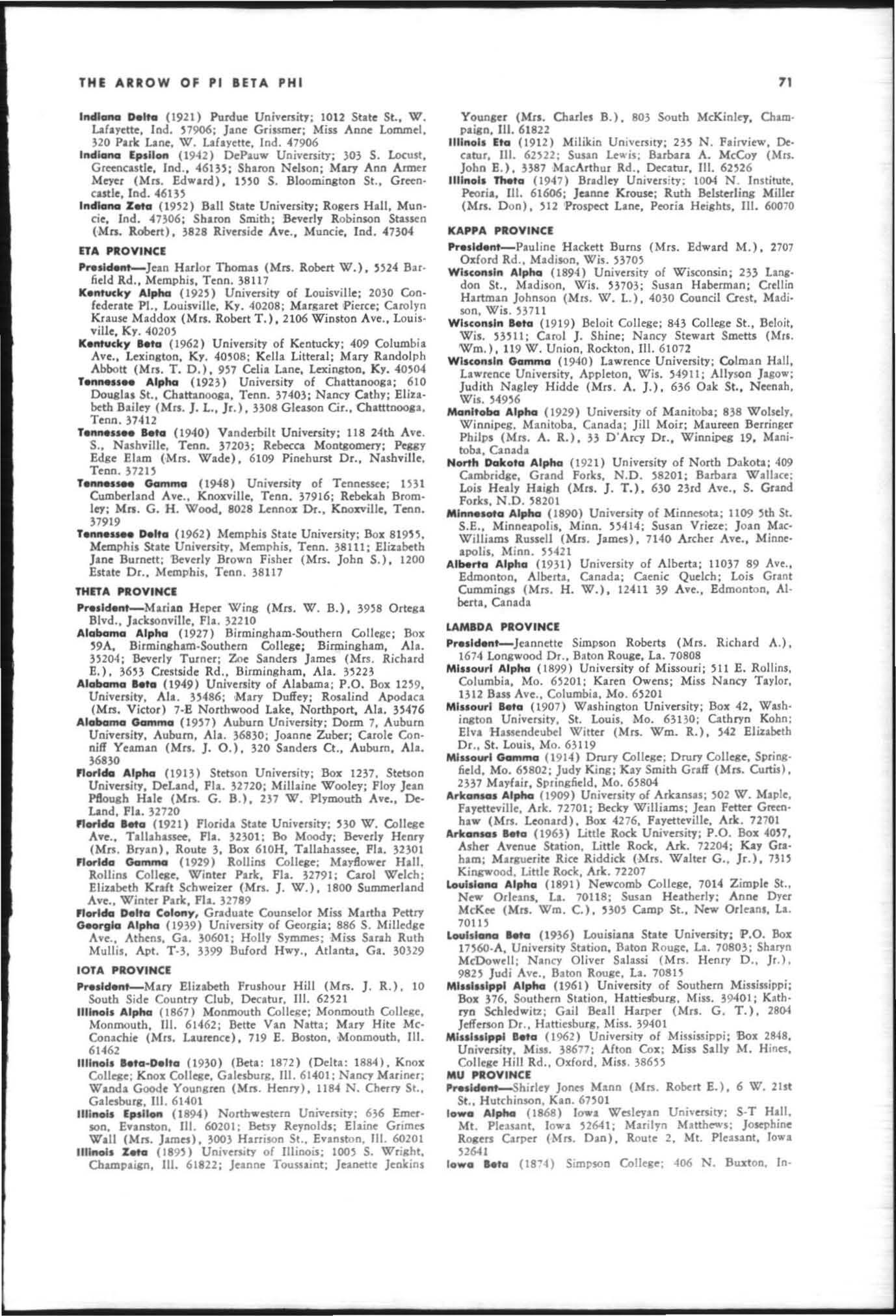 Hon<lr1Jble Menti ,'n' A1.1hama Bet a. Ind iana Frsllpn. Carolina Bela. Penns},h'ania Beta. Nova Sc-olia Alrha, M ass.l(huSC'us Beta, l (1wa uta, California Er· sil0n. Oregon Alpha, Kansas Alpha. Alabama A lpha. Kentucky Beta. Ontario Ikta, D.C. Alpha