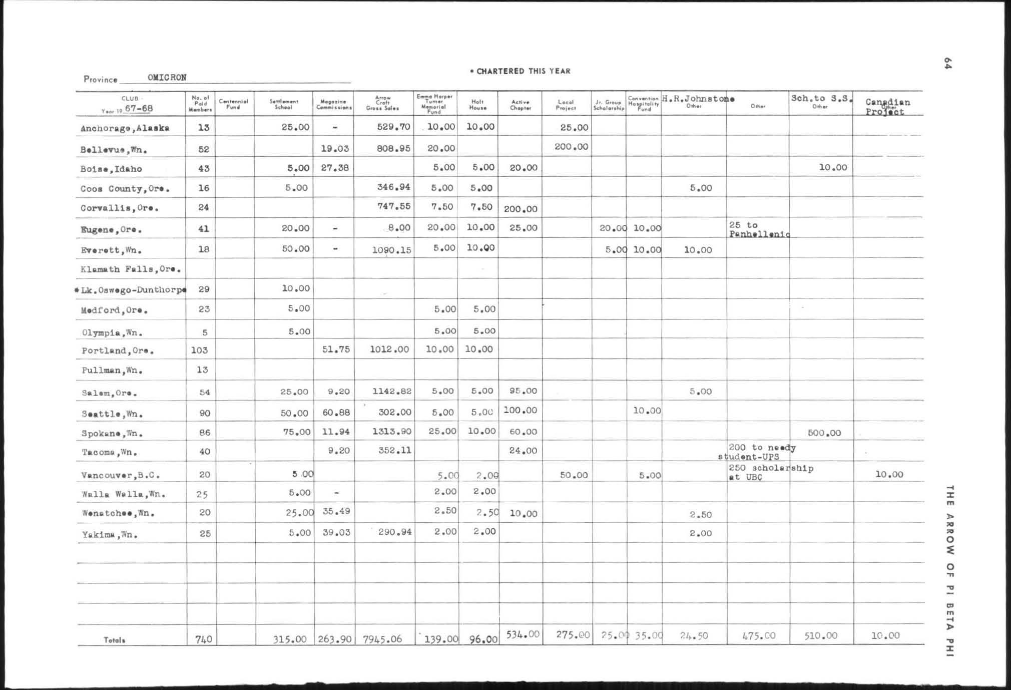 T ota l members of Pi Beta Phi now living and in good standing
