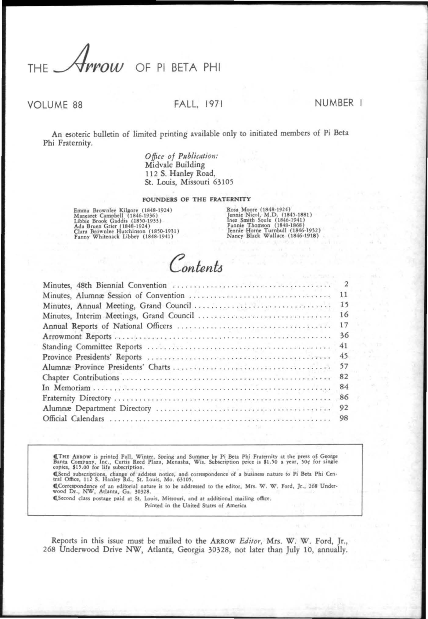 c.Send chance of no tice, Ind o f I businus nature to Pi IXta Phi untrll Office . 11 S . Hlnley Rd, . St . Louis, Mo . 6310' , ClCo rrupondence of an editoril l nlture is to be Iddressed to editor, MN . W, W, Fo rd , Jr .• 268 Undtr,..ood Dr ., NW, Atl lntl. G •. )0328.