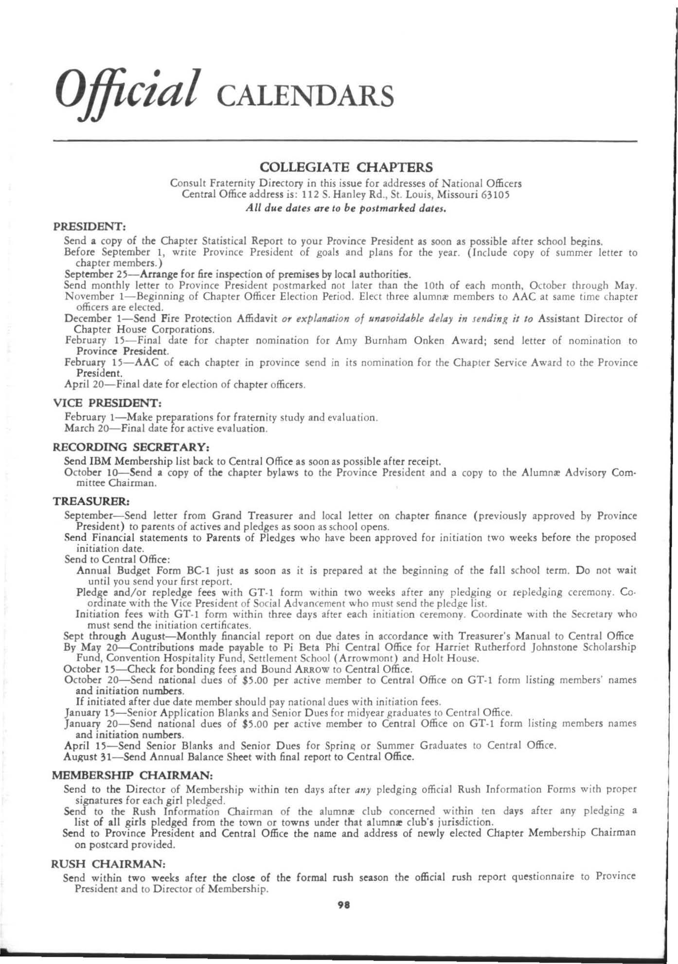 Due dates for reports are to be postmarked dates Consult Official Directory of this Issue for names and addresses of National Officers.
