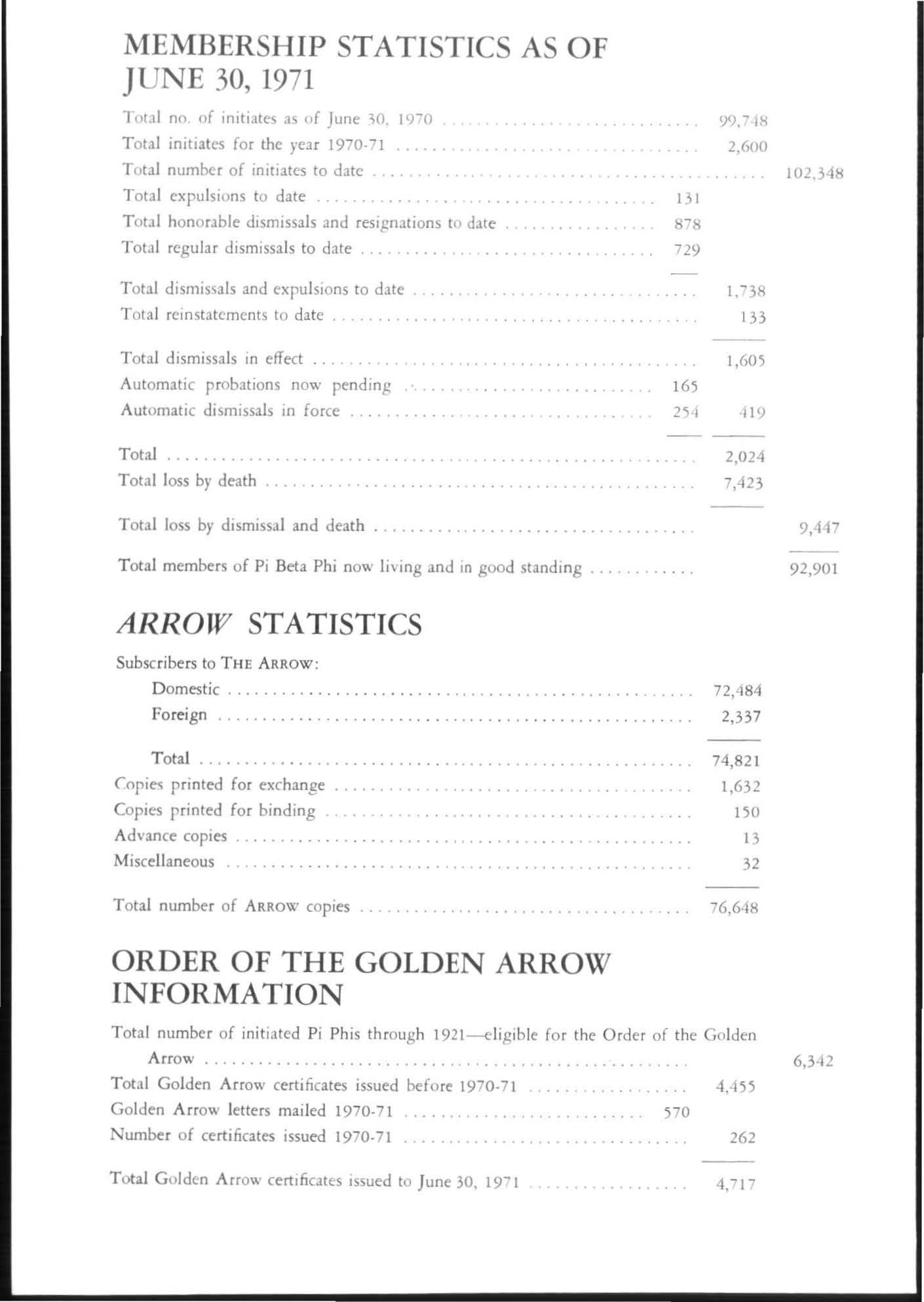Total number of in it iated Pi Phi s thr o ug h 19l 1-e l igib le fo r the Order of th e Go l den A rro w "