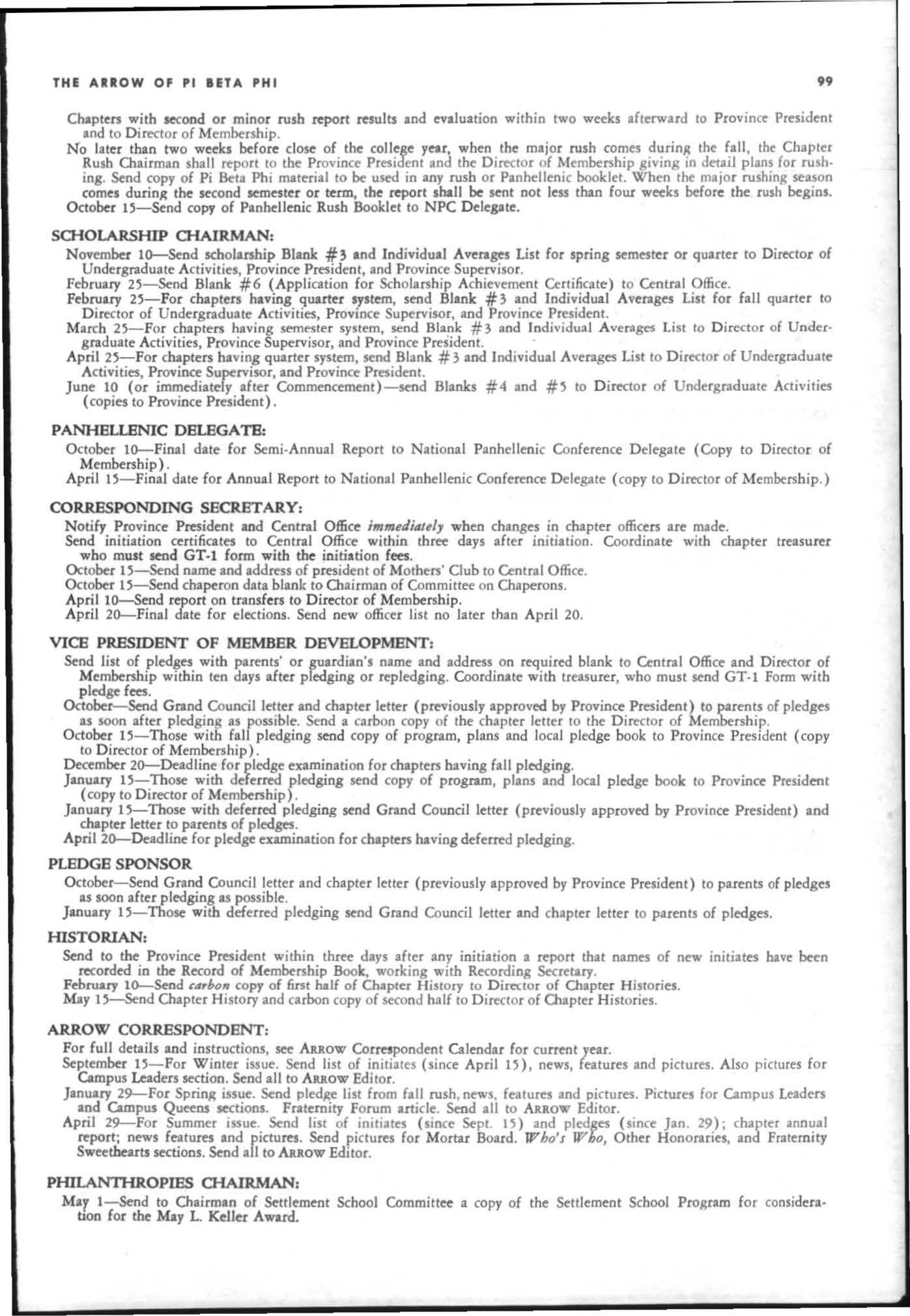 January 29-For Spring issue. Send pledAe list from fall rush, news, features and pictures. Pictwes (or Campus Leaden and Campus QueeDl sections. Fraternity Forum article. Send all to ARROW Editor_ April 29-For Summer issue. Send list of initiates (since Sept. 11) and pledges (since Jan. 29); chapter annual report; news features and pictures. Send pictures for Mortar Board. Who'.r Who, Other Hononries, and Ft1ltemity Sweethearts sections Send all to ARJloW Editor