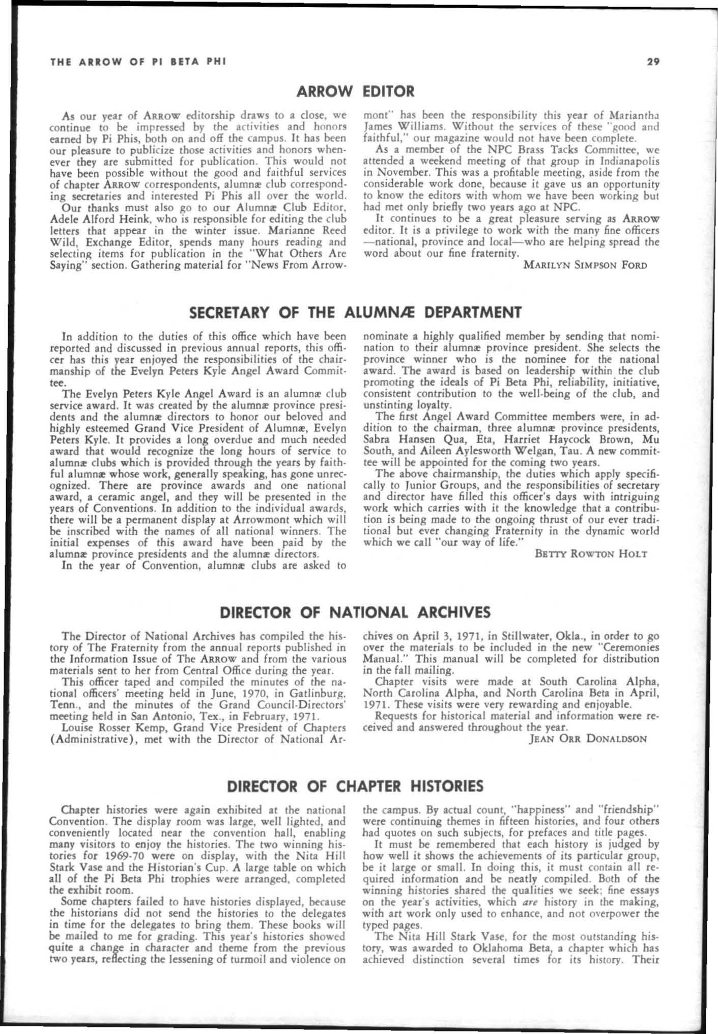 Reports in this issue must be mailed to the ARROW Edit or, Mrs . W. W. Ford, Jr ., 268 Underwood Drive NW, Atlanta, Georgia 30328 , not later than July 10, annually.
