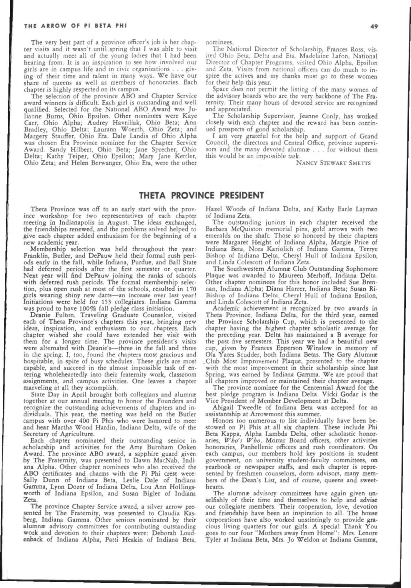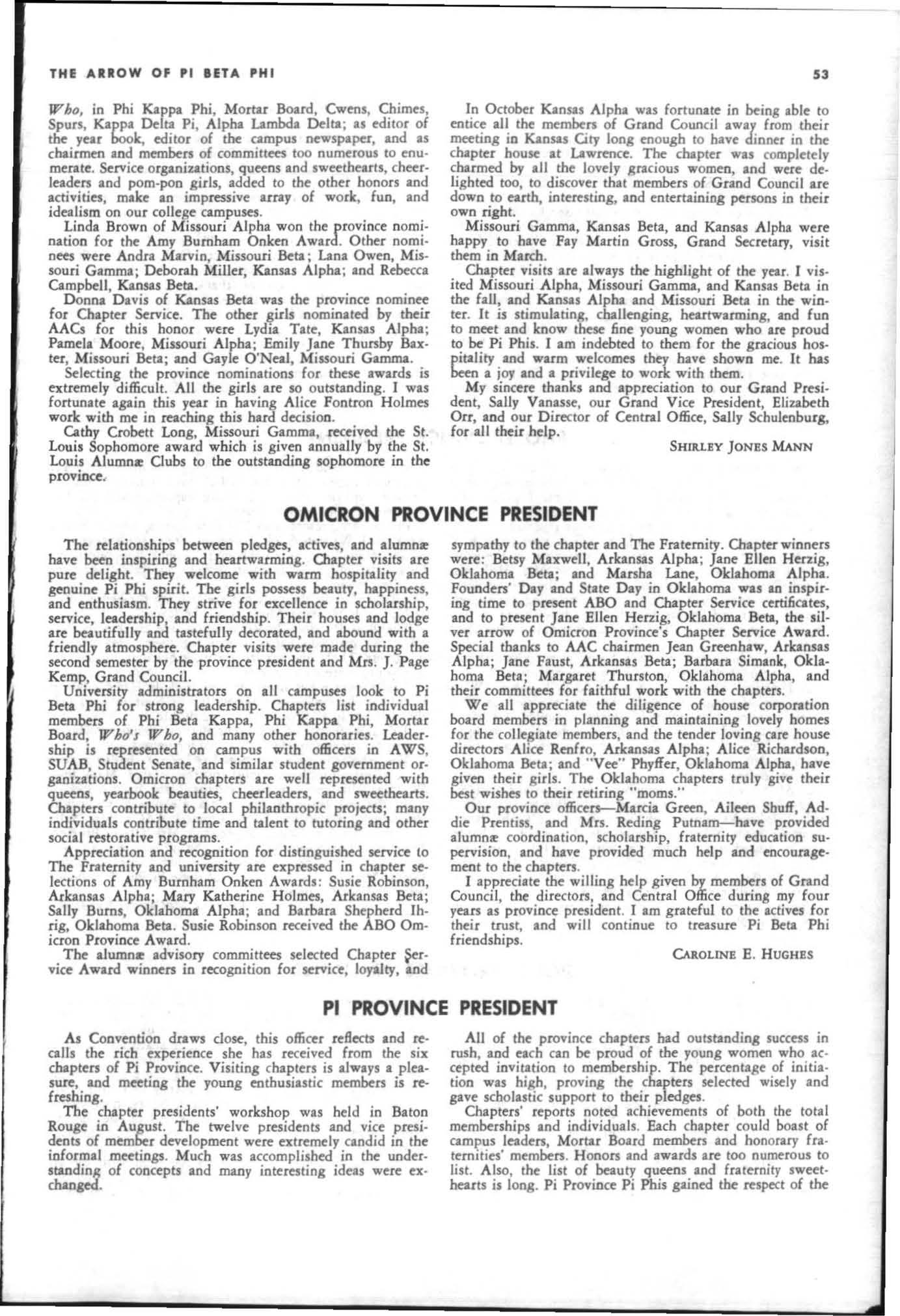 ClTHE Anow is printed Fill, Sprin, Ind Sumtn« bJ Pi Beta Phi Frattrn ity It the press Bantl ComPlny, Inc ., Cultis Rred Plau. Men asha, Wis. Subscripti o n price is '1. '0 I 'Oi! (or sircle 'll OO fo r l ile subscription.