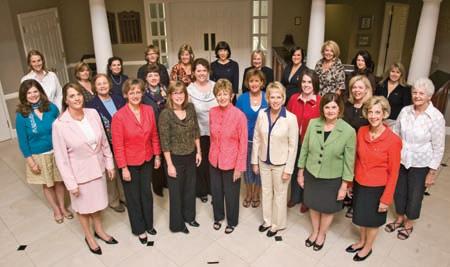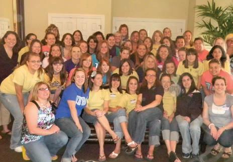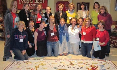 Past Grand Alpha Reunion attendees from bottom left, Texas Alpha aNN dudGEoN PhY, Colorado Alpha KaY KNittlE BroCK and South Carolina Alpha Sarah ruth MulliS. Second row left, indiana Delta loiS huStoN roSS, Montana Alpha MauriNE haGEr JoNES and indiana Zeta luCY BaKEr WarNEr. Third row left, Ohio Alpha CarolYN hElMaN liChtENBErG, Texas Delta CarolYN PavlEtiCh lESh, Pennsylvania Beta JEaN WirthS SCott and Missouri Alpha KarEN CoNSaluS PriCE. Forth row left, New york Gamma BEtSY harriS CaNtliE, North Carolina Beta