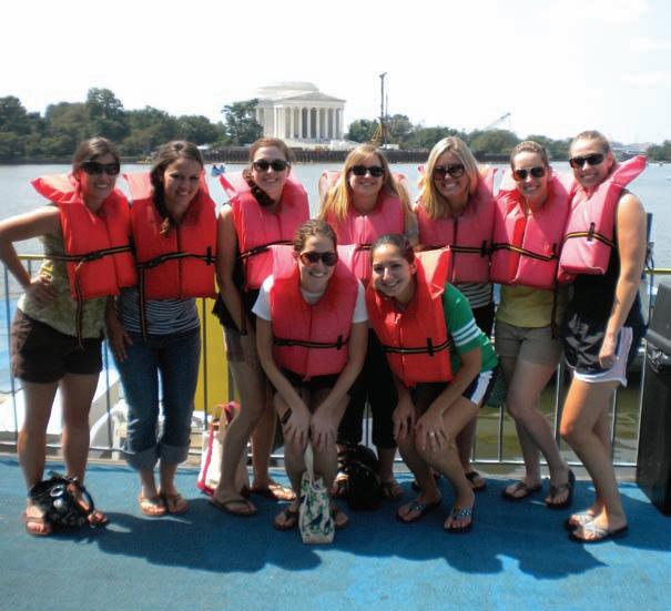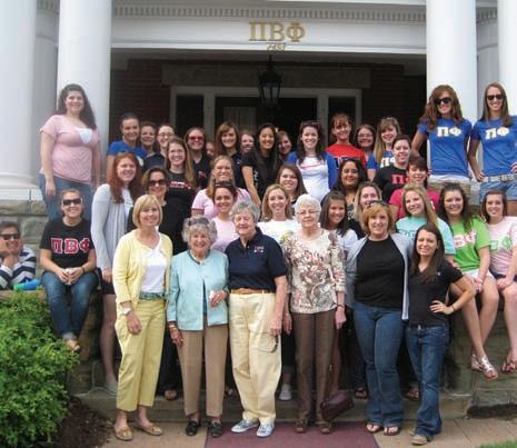 On Saturday, the women made the four-hour drive from St. Louis to Monmouth, Illinois, to visit our founding home, Holt House. While in Monmouth they also toured Stewart House, the founding home of Kappa Kappa Gamma as well as a campus tour of Monmouth College. Holt House Curator DENISE TuRNBuLL , Illinois Alpha, hosted a candlelight dinner for the women at Holt House. Before returning to St. Louis on Sunday morning, they visited the cemetery where five Pi Phi founders are buried and honored each of them with a short reading and flower.