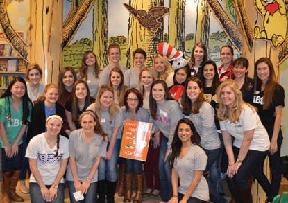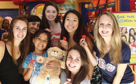 The New York Eta Chapter supports the fight against childhood cancer through the Andrew McDonough B+® Foundation. The chapter spends time with “B+ Hero,” Daniela, which included a trip to Build-A-Bear Workshop®. From back left, New York Etas CAROLINE MIGUELEZ , ANISSA ROSALES, PAIGE STEADMAN, ALLIE CAI and LAURA KRAISINGER . From front left, Daniela and New York Eta KRISTYN CURRAN.