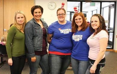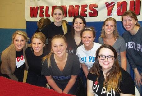 Each year, the South Dakota Alpha Chapter hosts a pasta dinner, Pi Phi Bowtie, for the University of South Dakota campus. From back left, South Dakota Alphas ALLISON BUSS , EMMY SMITH, CARLISA LANGEROCK , ABBEY ULRICH and ELLIE DAILEY. From front left, ASHLIN PEITZMEIER , KELSEY JOHNSON, AMELIA HOWARD and CALLIE MEYER .