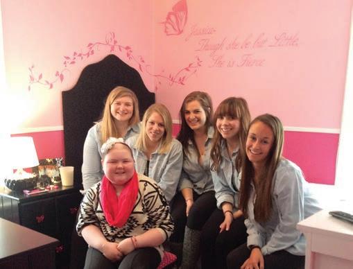 Minnesota Alpha LAUREN CURWICK founded Designing Dreams to redesign the bedrooms of children with cancer. Lauren (second from left) and her team, including Minnesota Alpha BECCA SCOTT (third from left), completed their first room for 13-year-old Jessica (front), who has a rare bone cancer.