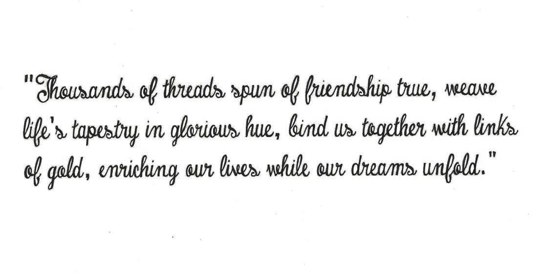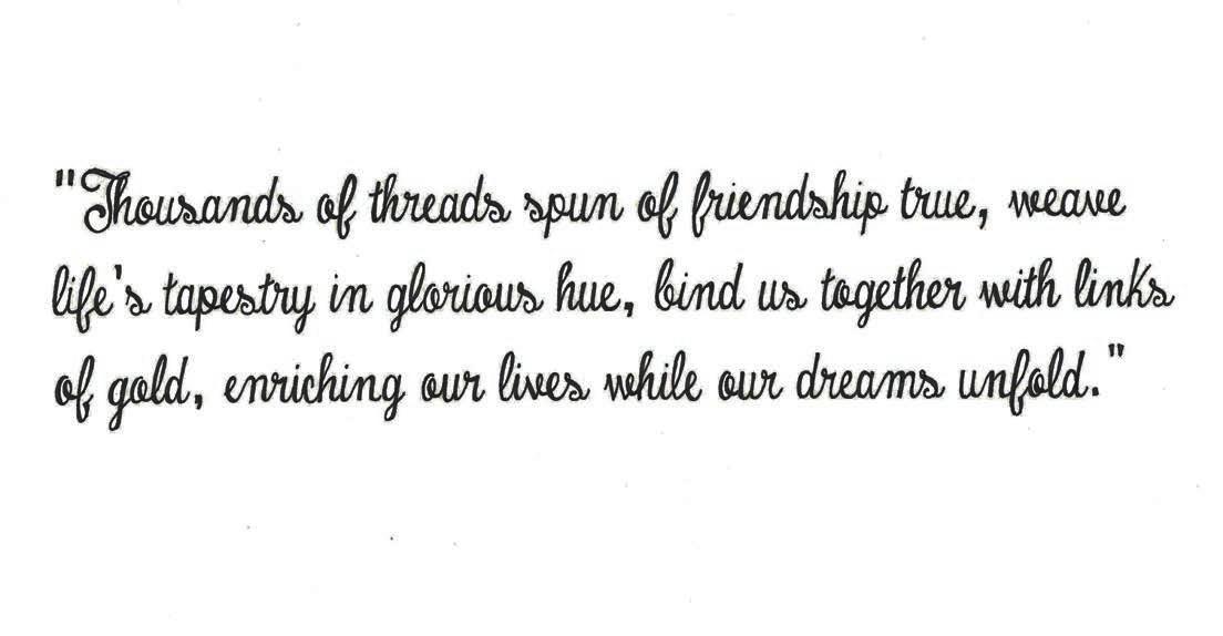 Massachusetts Alpha PHYLLIS FAZZARI SPEER always seemed to have just returned from an exotic trip and Ohio Zeta JUDITH MEAD JOHNSON had great advice about how to look and feel our best. In every task they did and every bit of advice they shared, I felt their interest and pride for our young but strong chapter.