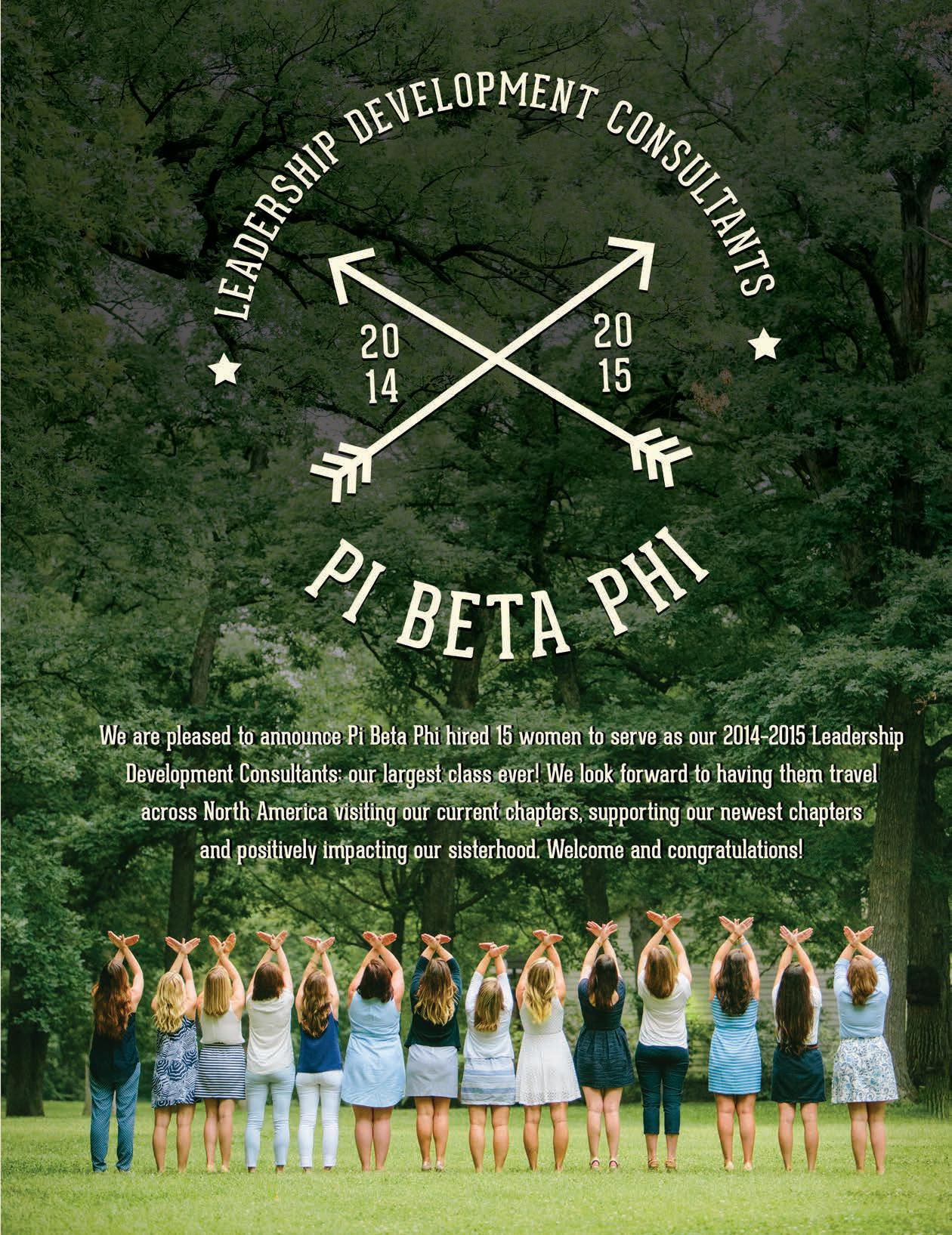 Pi Phi wants to hear your voice! Nominate the Fraternity’s leaders of tomorrow. Submit an ideal slate or nominate candidates for Grand Council and Director positions for the 2015–2017 biennium. Visit www.pibetaphi.org to submit a nomination form or to self-identify. Nominations are due November 15, 2014.