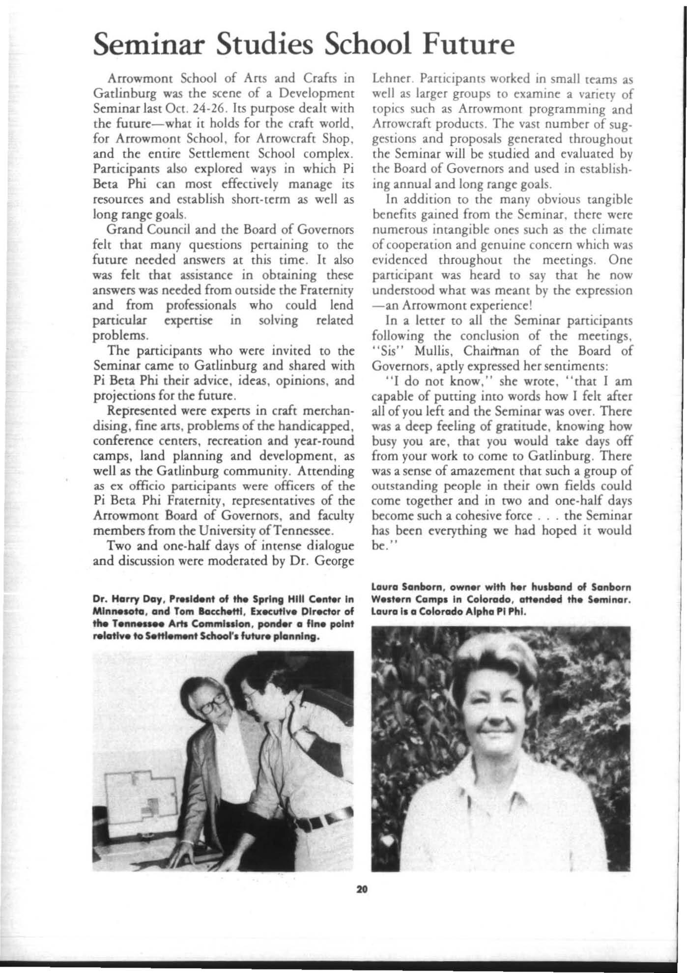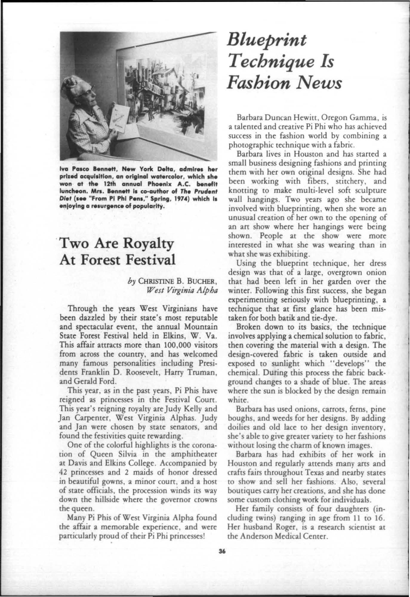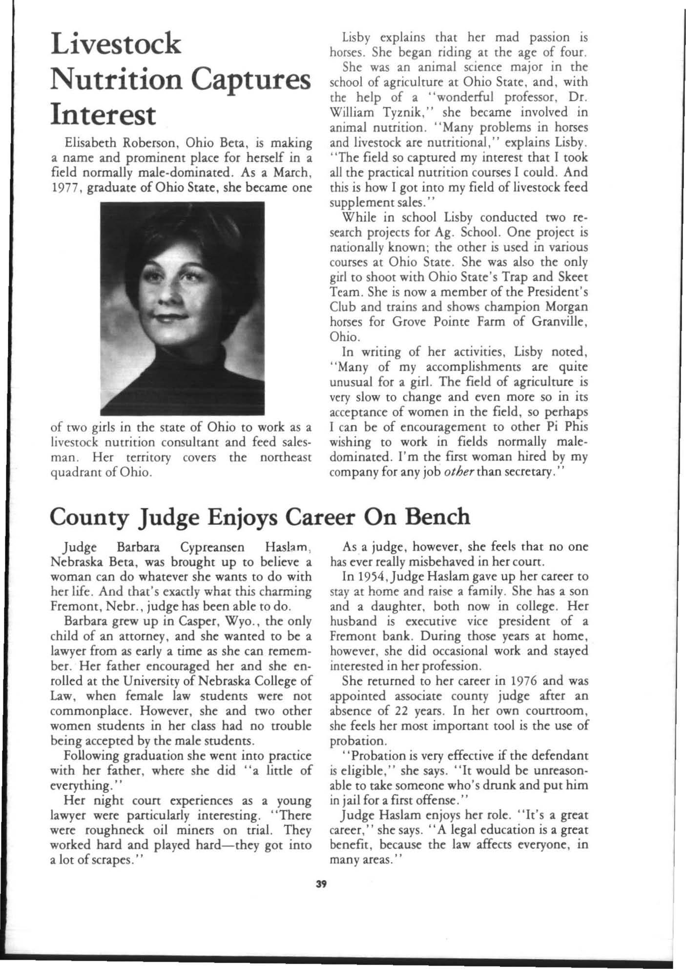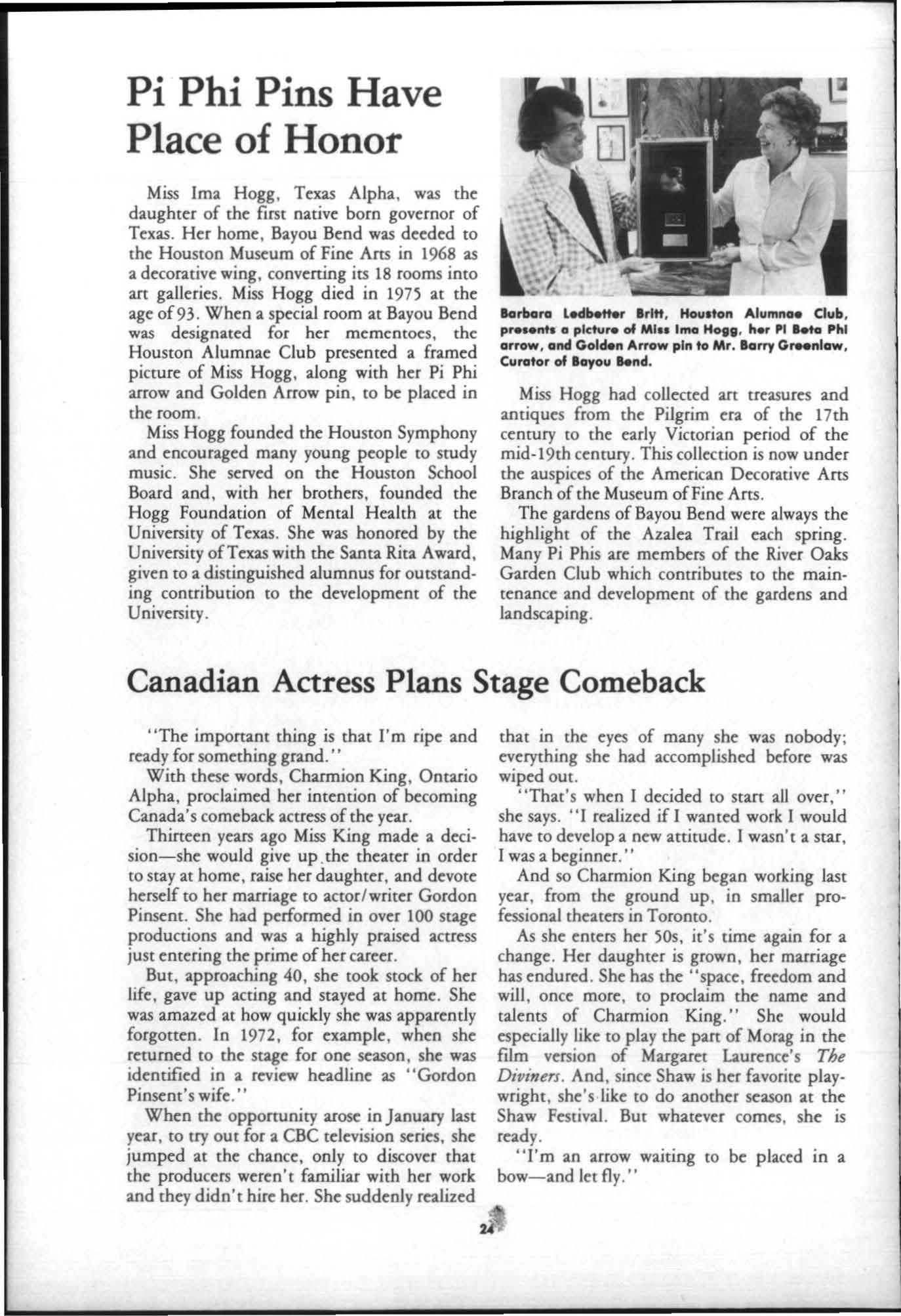 I t is e n cou raging to me to notice 2 subtle c hange of direction in our Fraternity publication. The accomplishments of women , young and old. who happc=n to bc= PI Phis. are but a reOc= ction of all women throughout our country. The changing role of women is evident by Iheir many achievements Your reco gnilio n of the accomplish. ments of a few can only serve to advance Ihe Sta tU S of w omen and thereby the quality of life for 211.