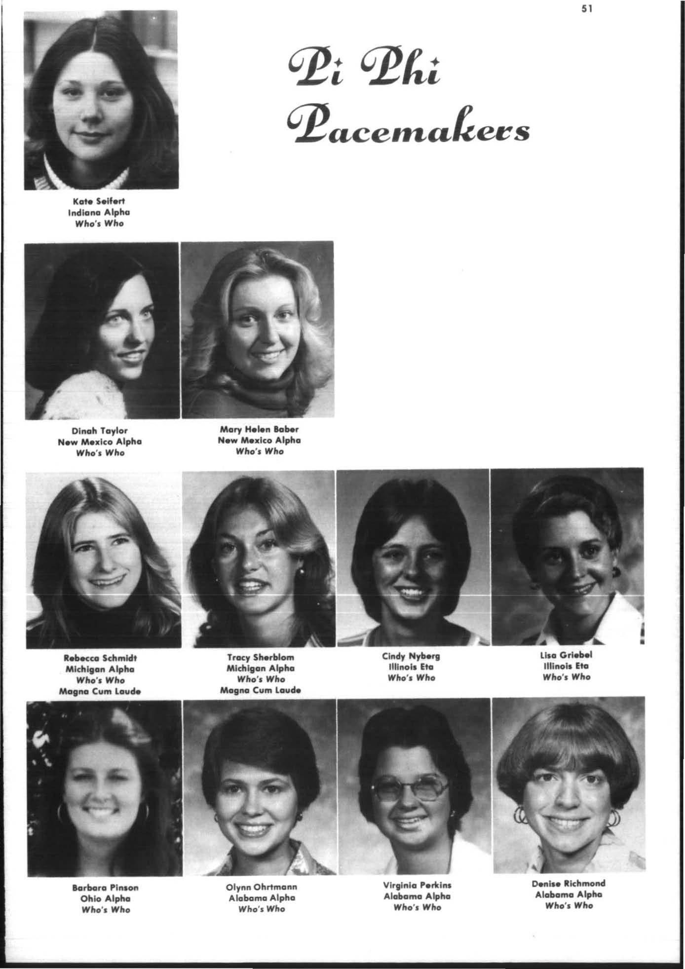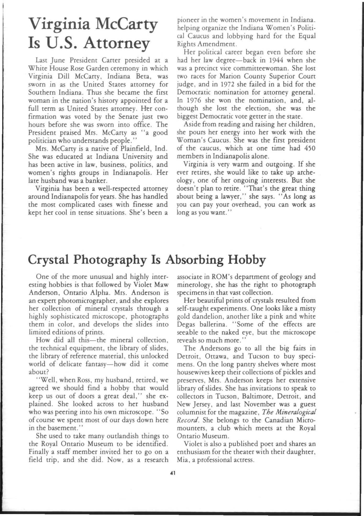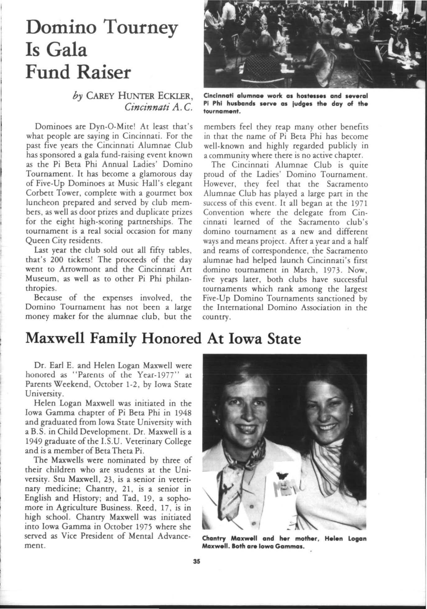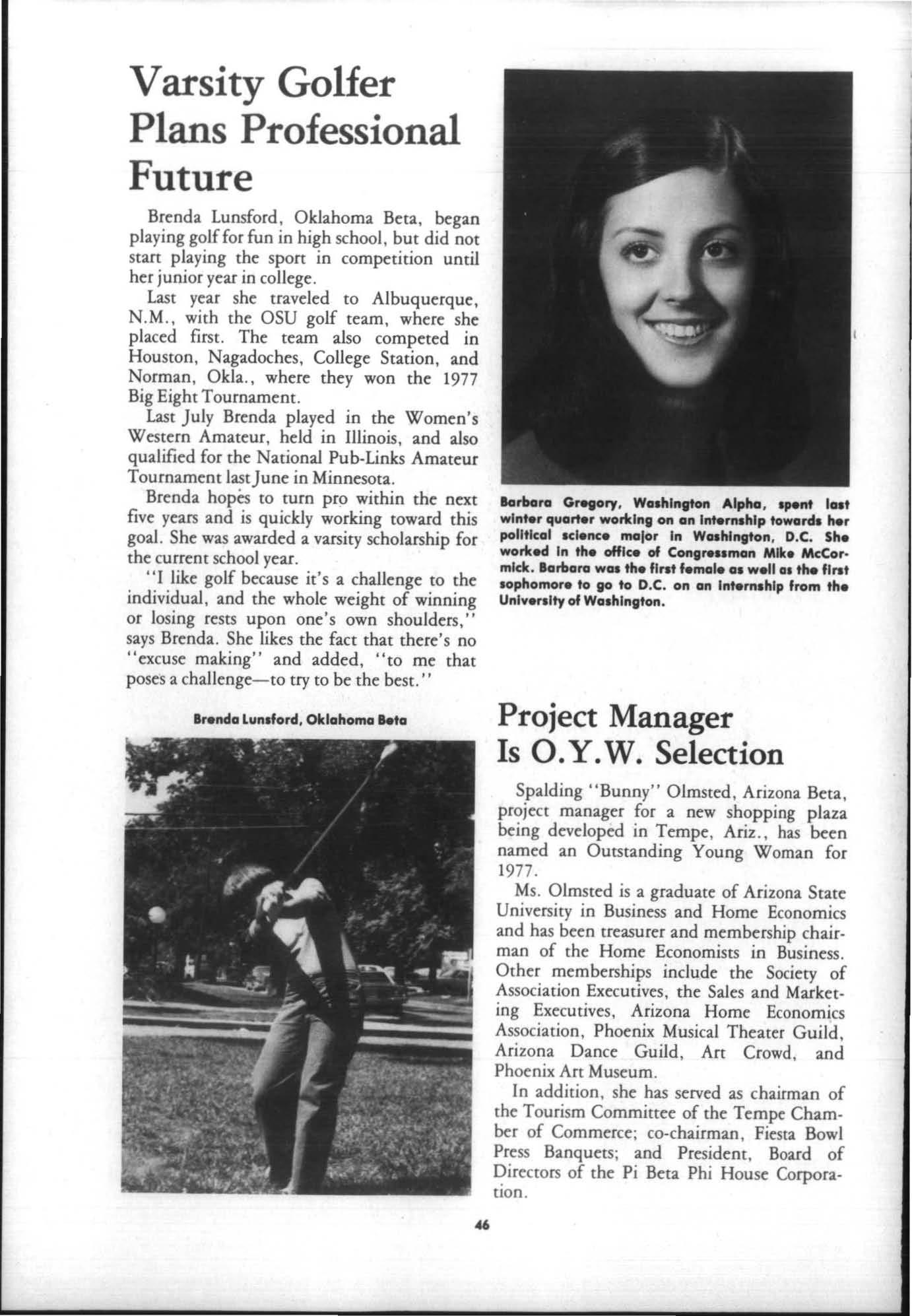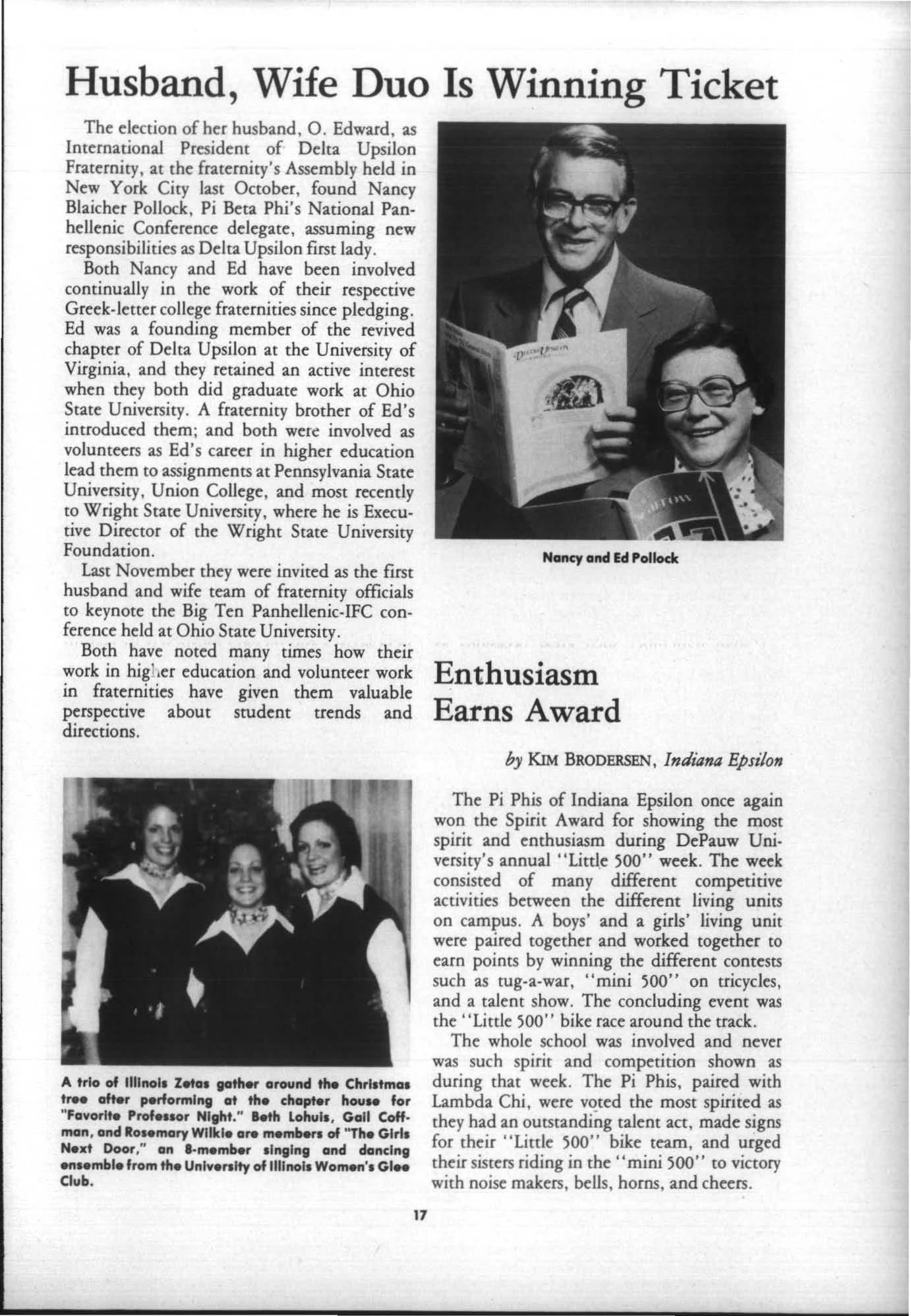 FRONT COVER: These Indi2n2 Pi Phis reprc=sentc=d six of the H girls chosen a.s Indianapolis )00 Festival Prinec=sses for 1977. L·r: Lynn W2ujes. Leslie S2rkesian, and Linda Morgan , Indiana Delta; Pam McDona.ld Cathy Gretencord. 2nd Sherry Bc:dell , Indi ana Bc:ta