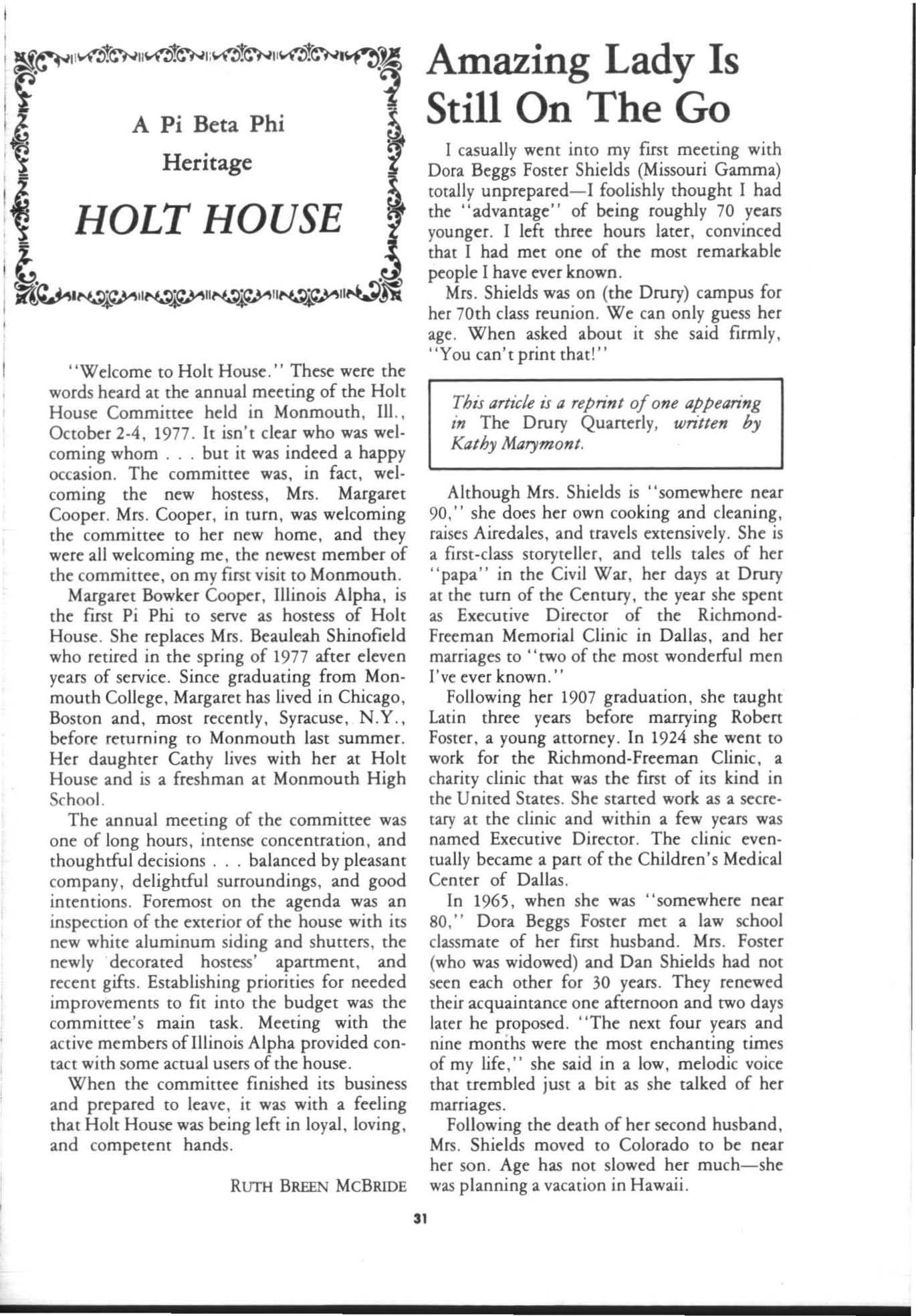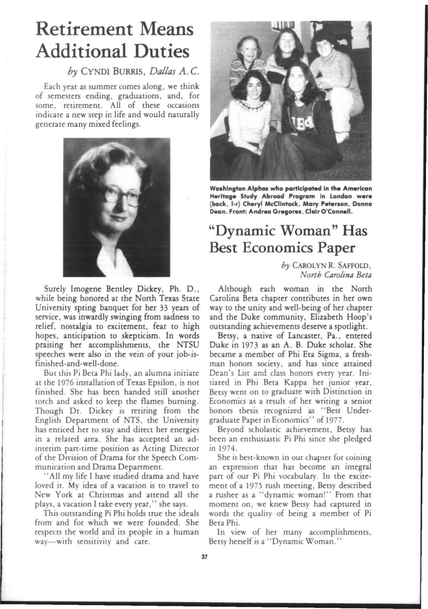 Pi Beta Phi will miss these twO devoted women. and our deepest sympathy is extended to both families .