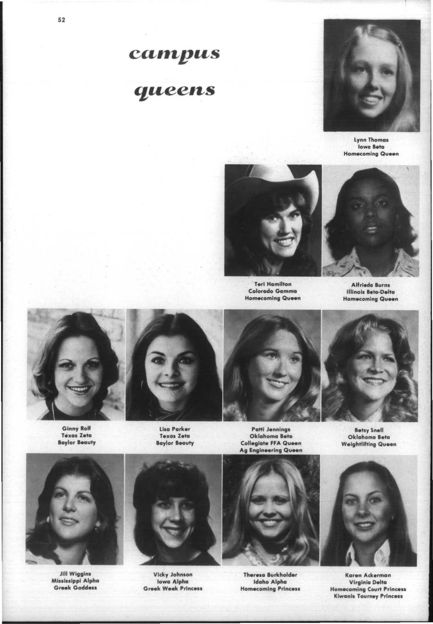 Each year Oklahoma State Unlver.lty chao.e. ten fre.hmen women who have mode out.tandlnliJ contribut ion. to the University and loclety durlnliJ their fre.h man y.ar Thll year Patti BoulanliJer Oklahoma Beta . was .elected on the bal ll of her outitondlnliJ IiJrad.. and act lvltlel . both on campul and oK .