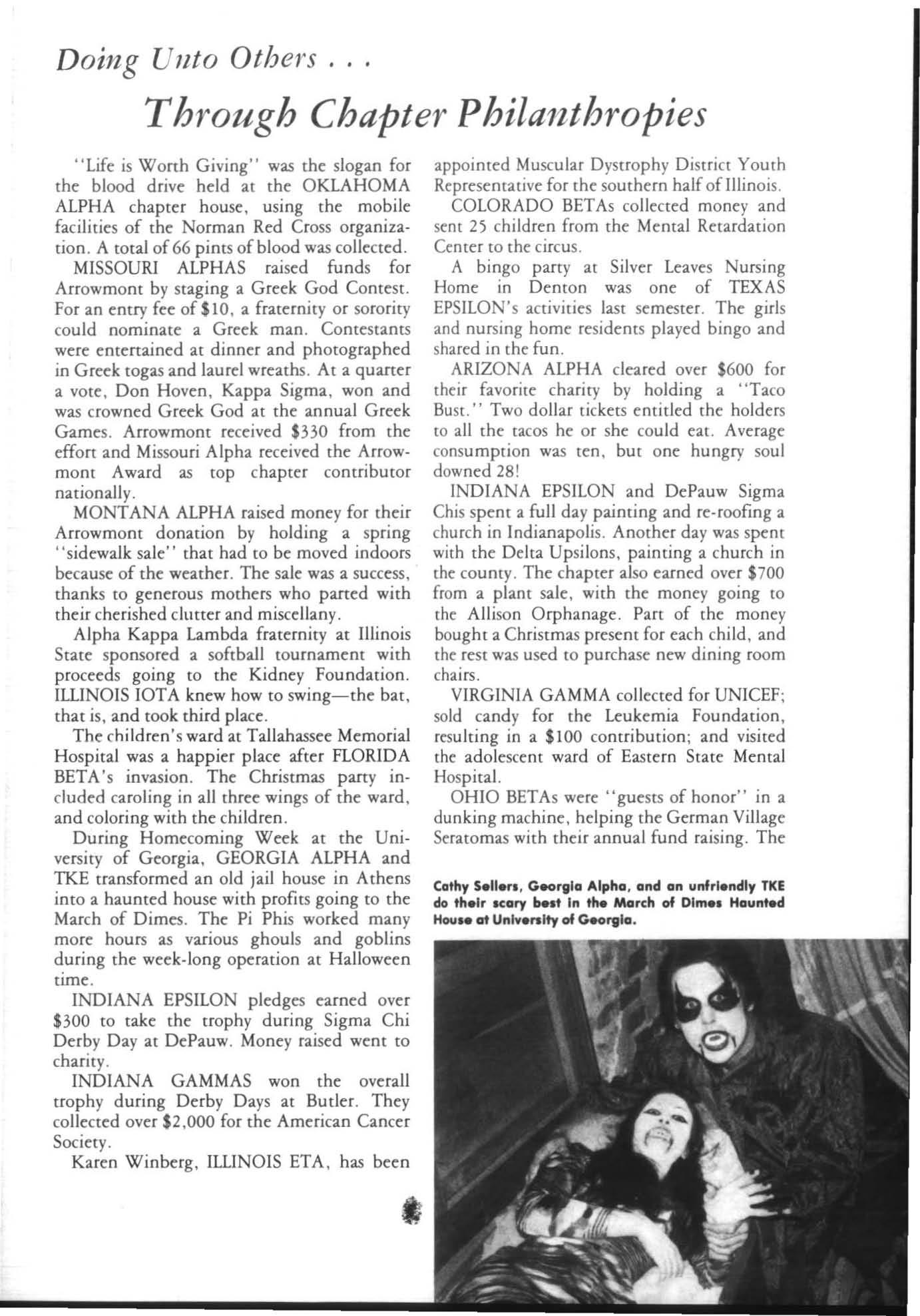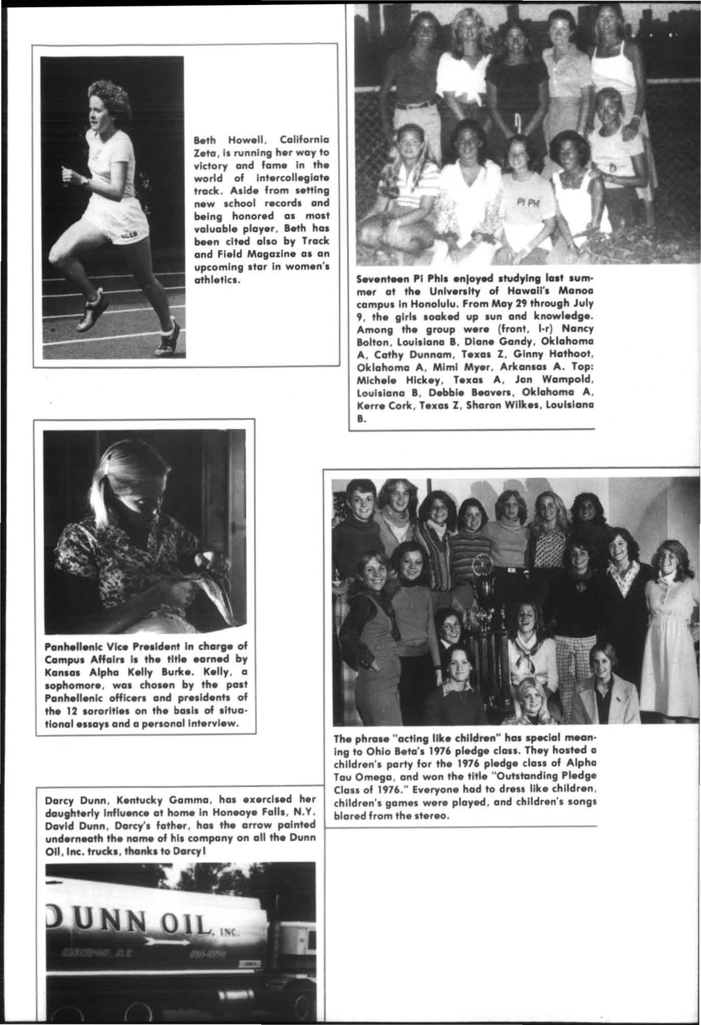 The phrase " acting like chlld,.n" ho. sp«lal meaning to Ohio Beta ' s 1976 pledge clan. Th.y hosted a children ' s party for the '976 pledg. cia of Alpha Tau Omega and won the title " Outstanding Pledge Cia •• of 1976. " everyone hod to dre like chlldr.n Darcy Dunn. Kentucky Gamma, hal e.ercls.d her children ' s game. were played . and children' s .ong. daughterly Influence at horne In Honeoye Fall • • N.Y blared from the stereo. David Dunn Darcy'. father ha. the arrow pointed 1--------------------und.rneath the name of hi. company on all the Dunn 011 Inc. truckl thanks to Oorcyl