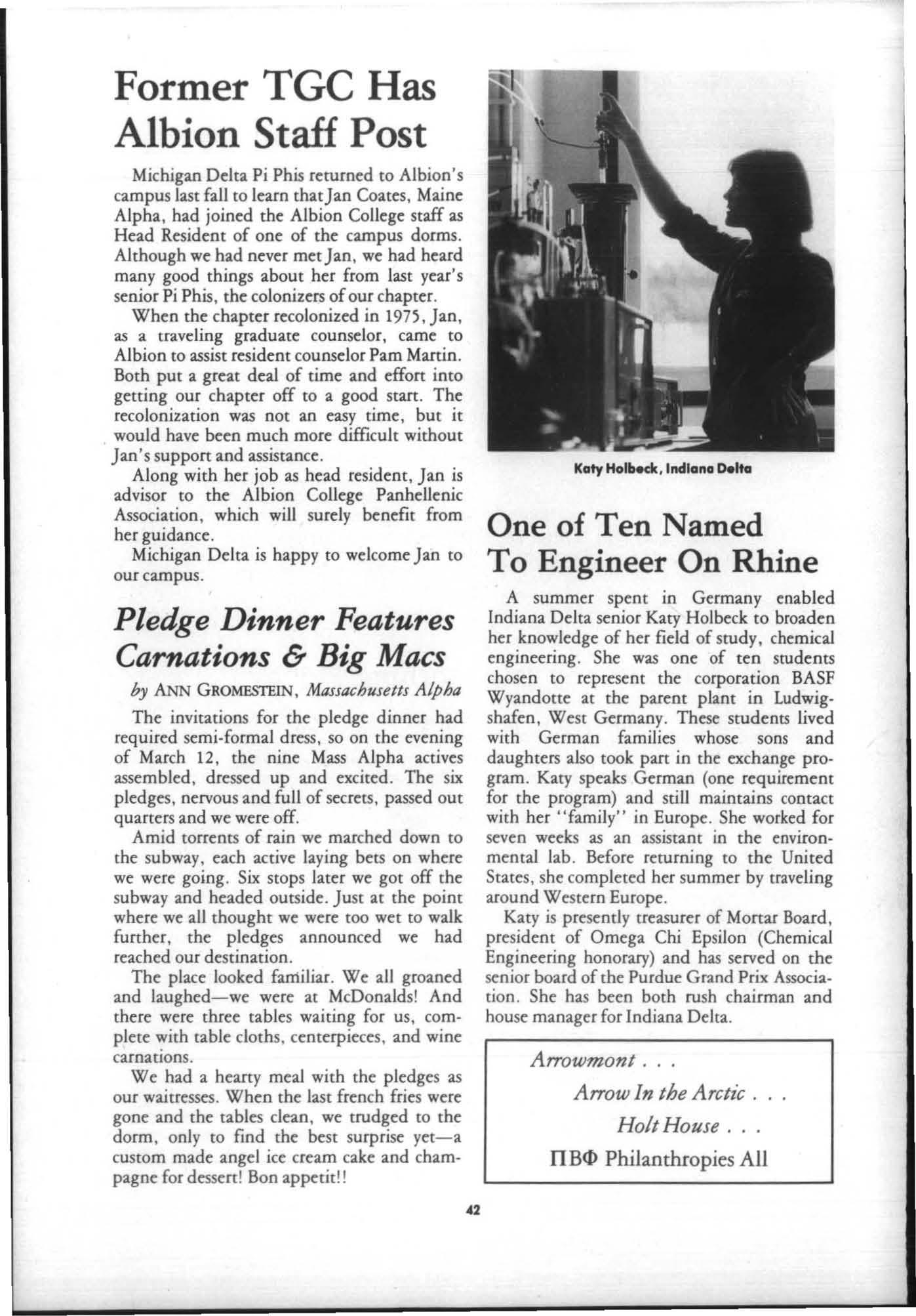 ----.. could ftll at least StX Issues of The ARROW per )'earwlth the accomplishmentS of PL Phi women They-are mam and v-arled msf
