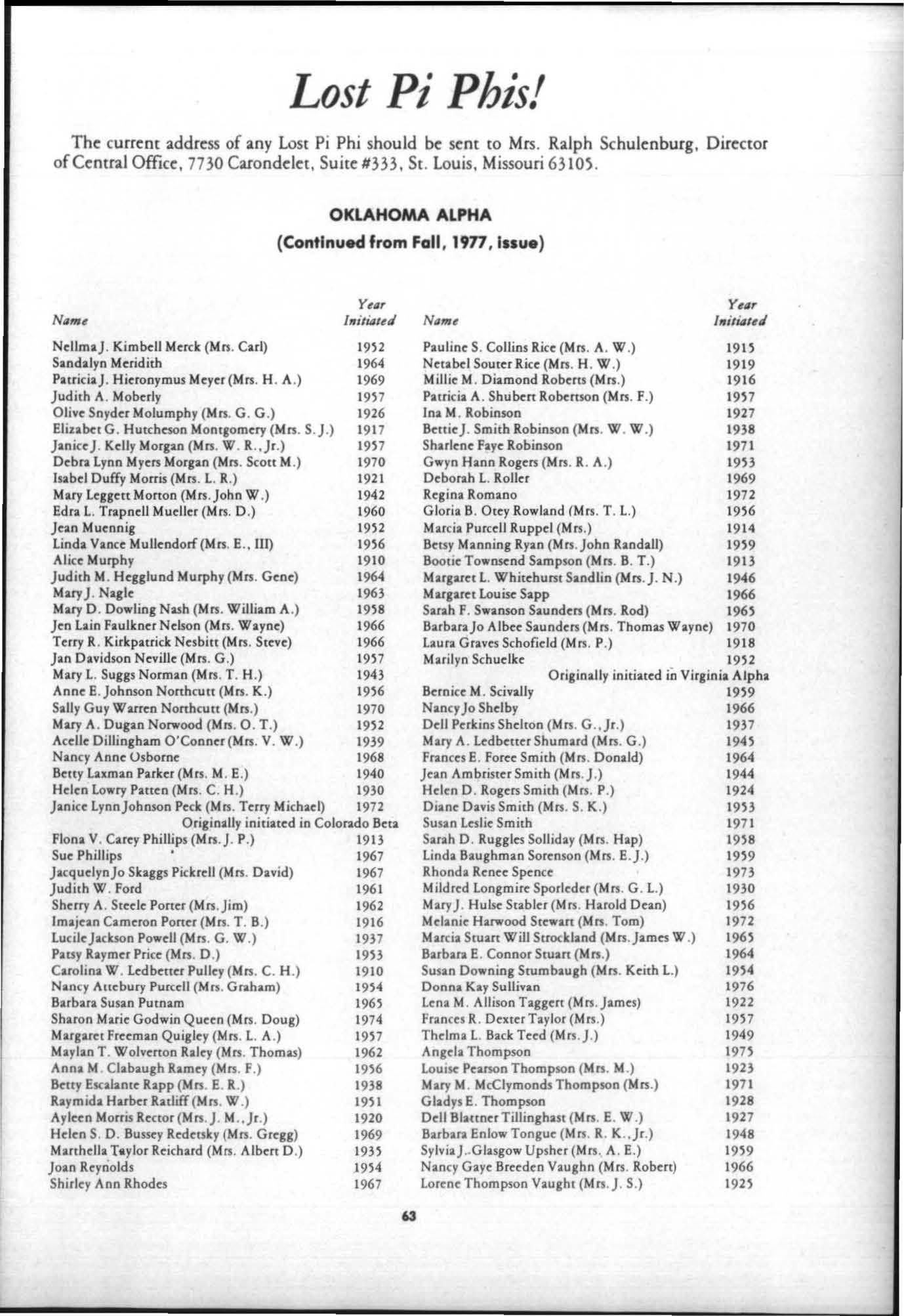 C.Scnd cbanle of Iddre:h not ice and corre:sponde:nce "f I bu. intSi nature to Pi !ktl Phi Central Olli ce, 17)0 urondde:l. Suit e H), St Loui•• Mo 6)10) C.CorrnPOndence of an ednor ial nature: i to be addressed to the ed itor, Mrs W W. Ford. J r 261 Under· ood Dr , NW. Athnta, Ga , )0)2'.