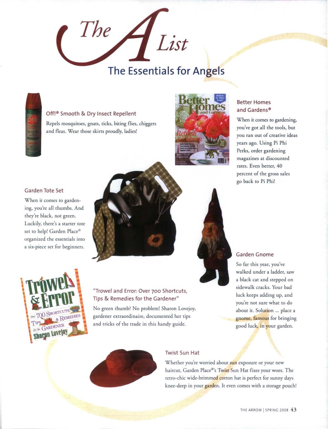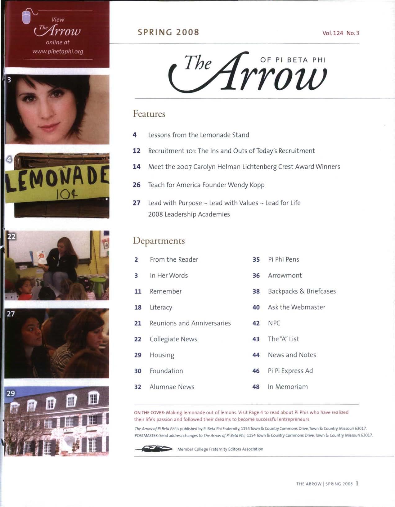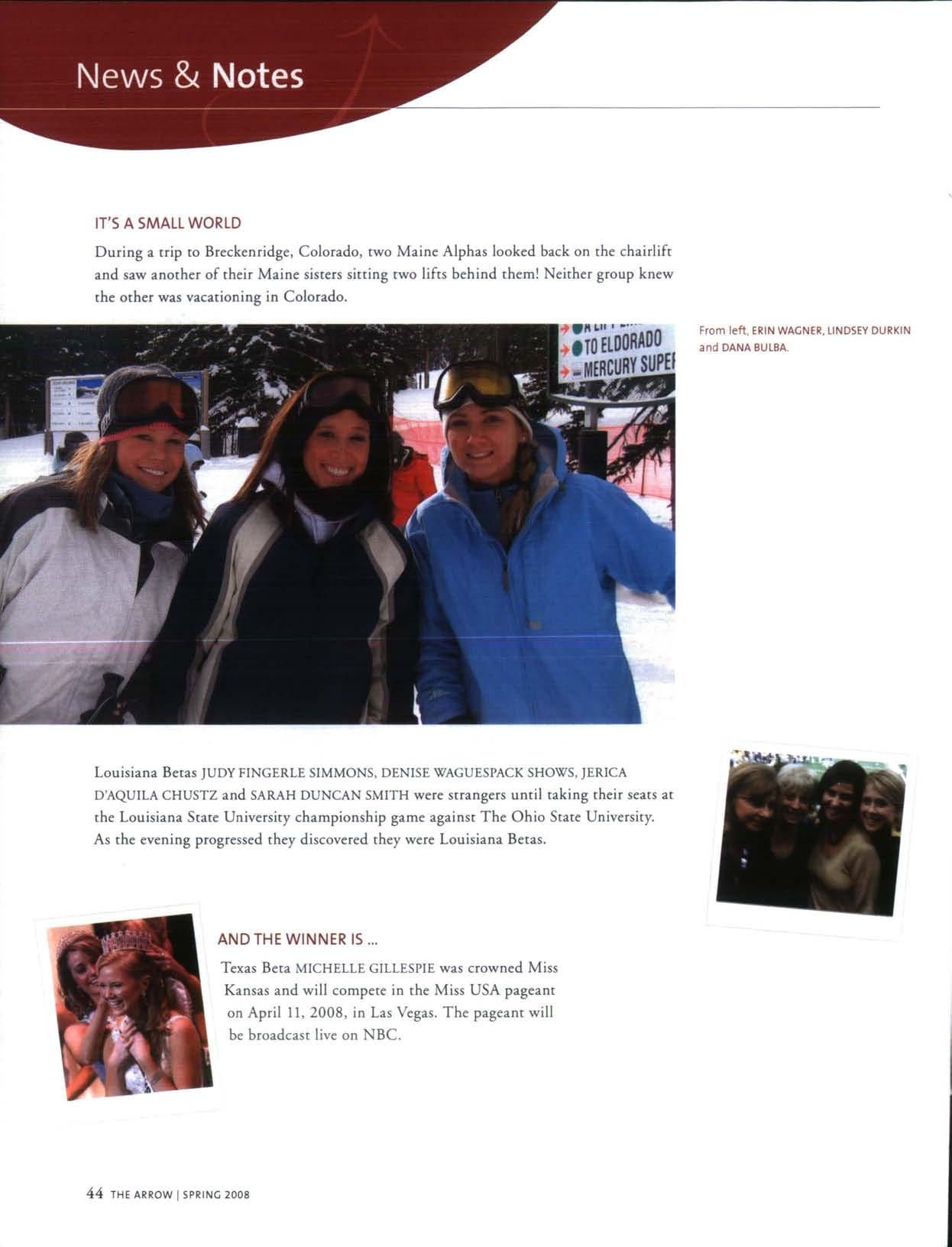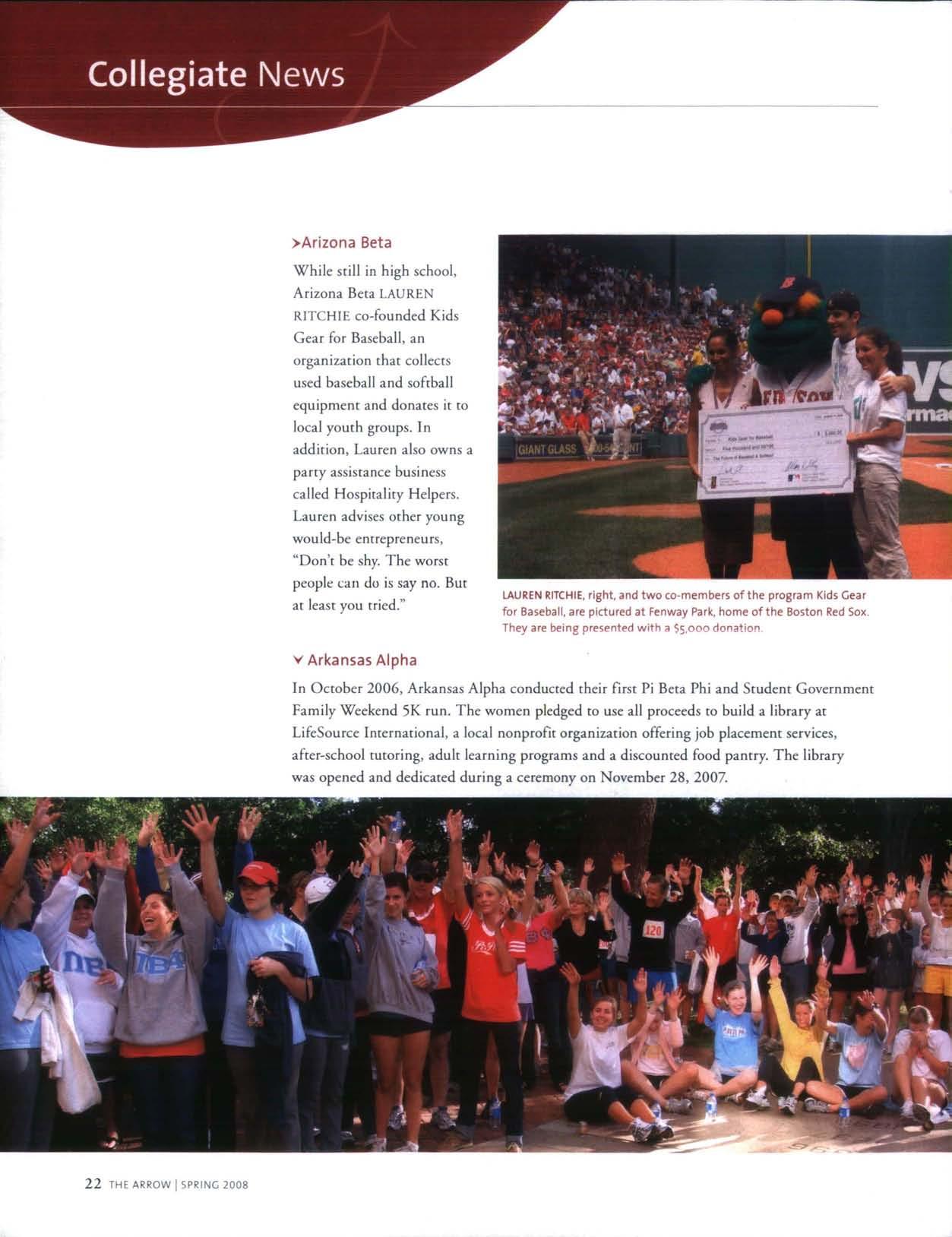 I just wanted to send my compliments and sincere thanks to your editor. After graduating in May, I moved to New Zealand . A lthough I love to travel , meet new people and see more of t he world , it is often difficult to be so far awa y from my family and friends. My mom sends me The Arrow in my ca re packages from home and each time I read it I am remi n ded of how strong my friendships with Pi Phi s isters remain , even on the other side of the world. Keep up the great work!