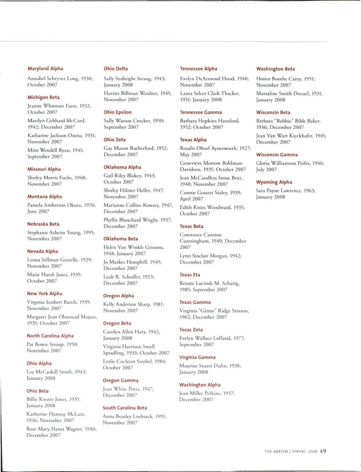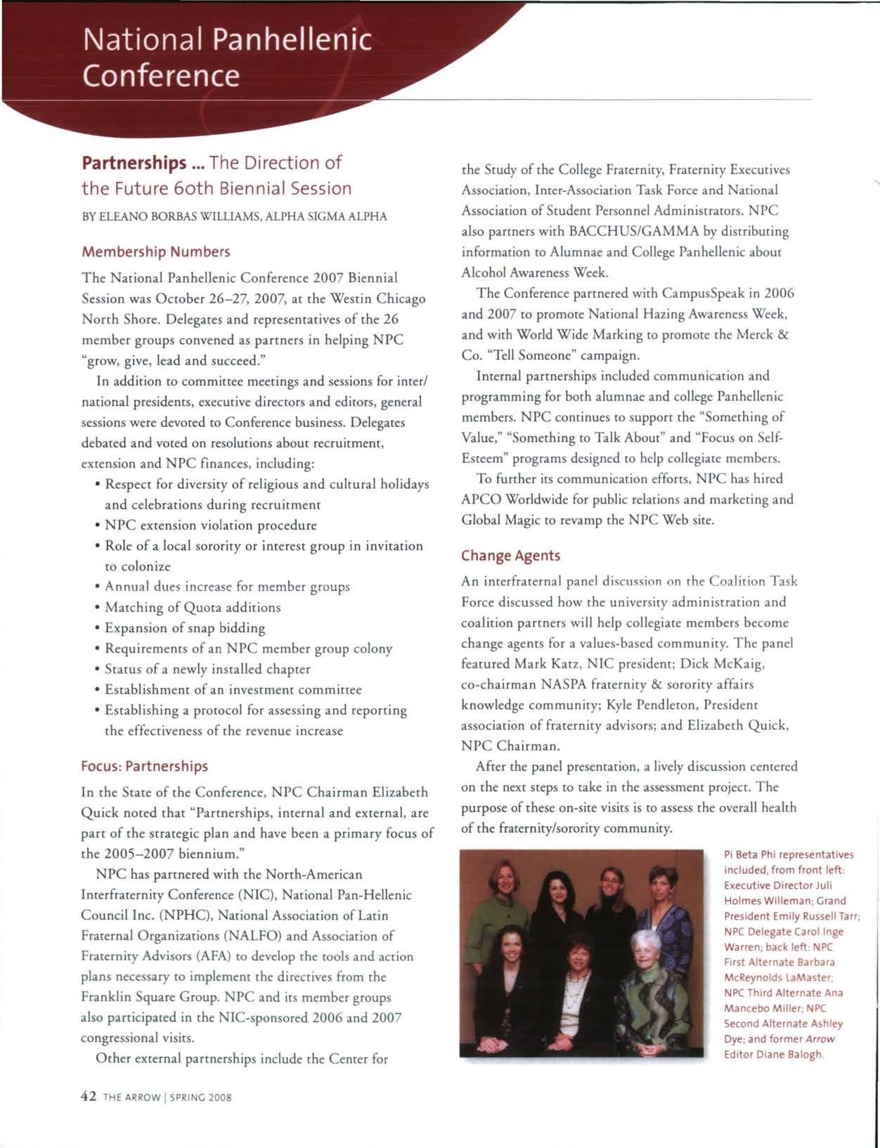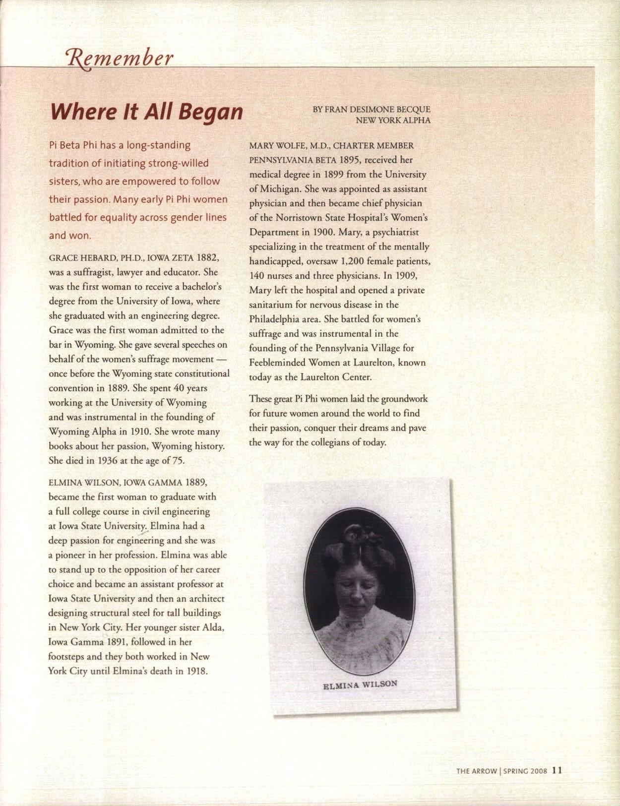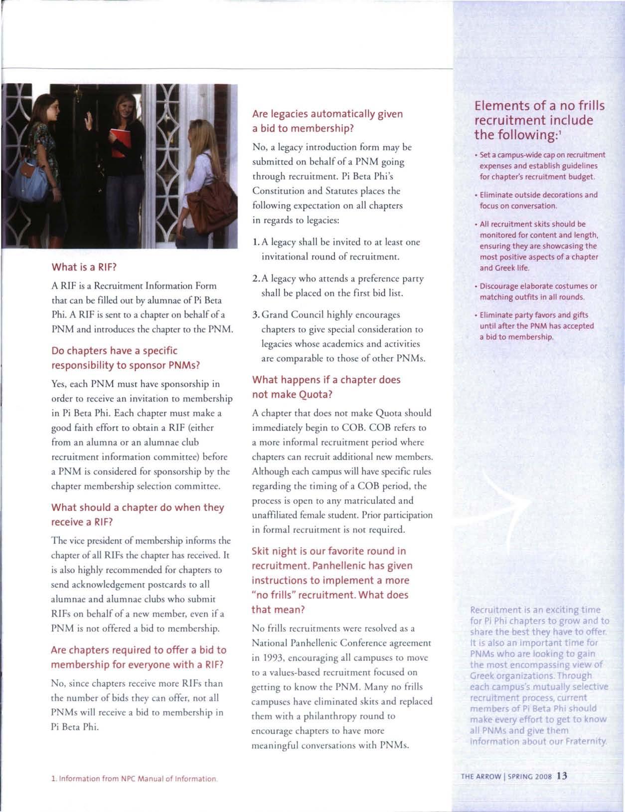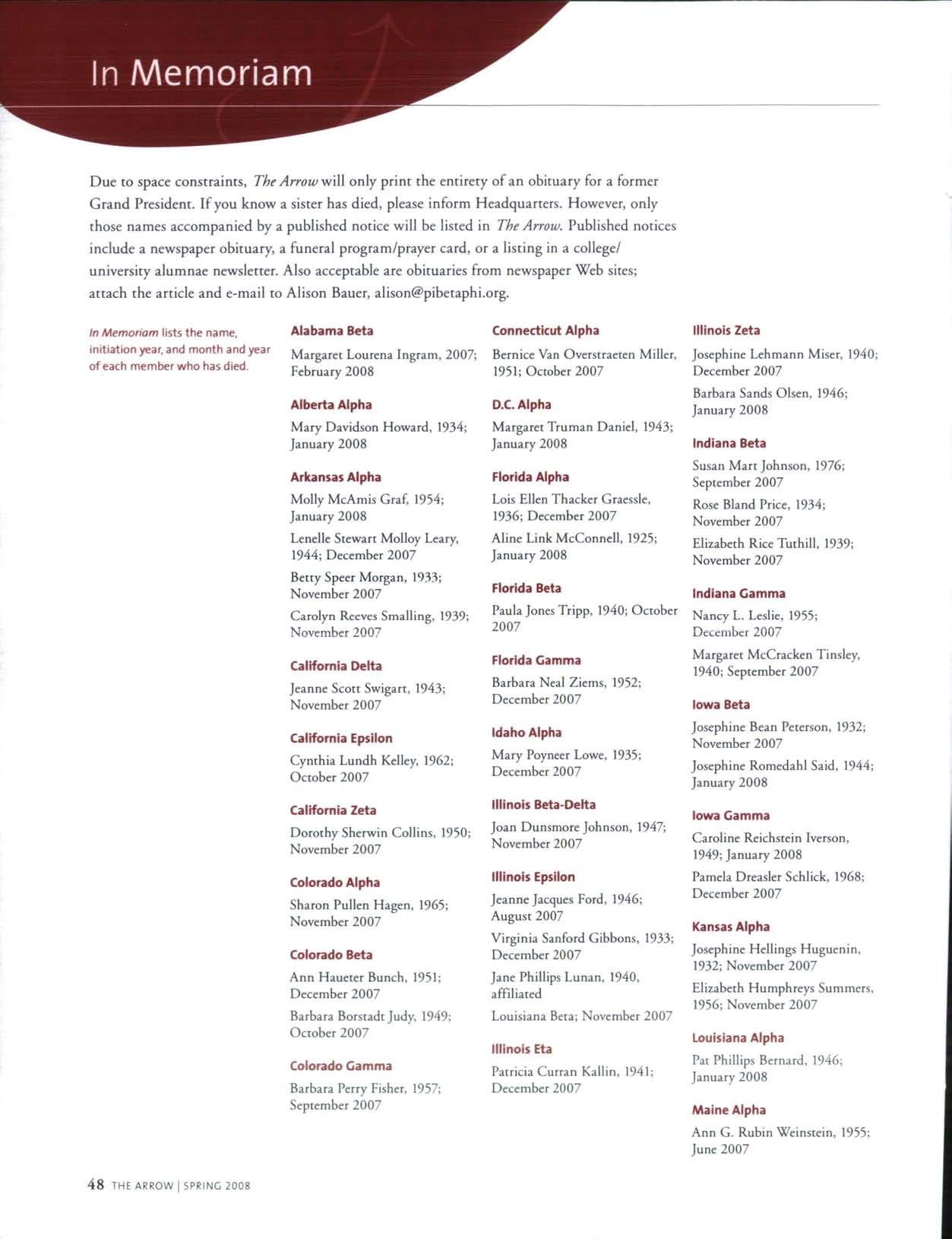 I just wanted to send my compliments and sincere thanks to your editor. After graduating in May, I moved to New Zealand . A lthough I love to travel , meet new people and see more of t he world , it is often difficult to be so far awa y from my family and friends. My mom sends me The Arrow in my ca re packages from home and each time I read it I am remi n ded of how strong my friendships with Pi Phi s isters remain , even on the other side of the world. Keep up the great work!