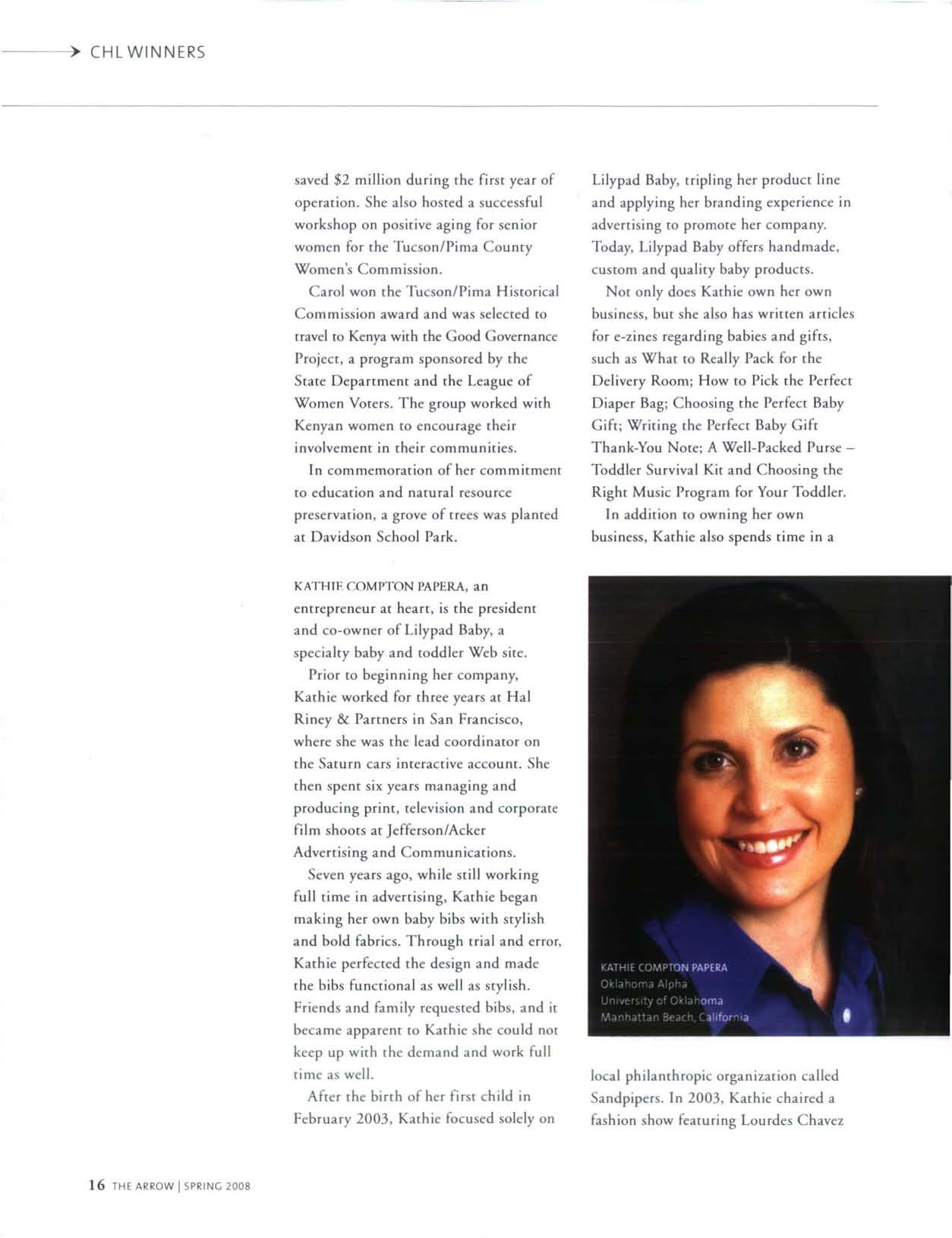 The Wint er issue of The Arrow is one to certainly warm our hearts! The c up of latte on the cover i n vi t e d me right in, not ju st for a s ip, but a cover to cover read. We are an organization of wonderful and amazing women and their li fe experiences enrich and motivate us and help us t h rough life 's journey. Many thanks to all who are so willing to share with their sisters. The magazin e just keeps getting better and better, both in looks an d content. Keep up the great work!