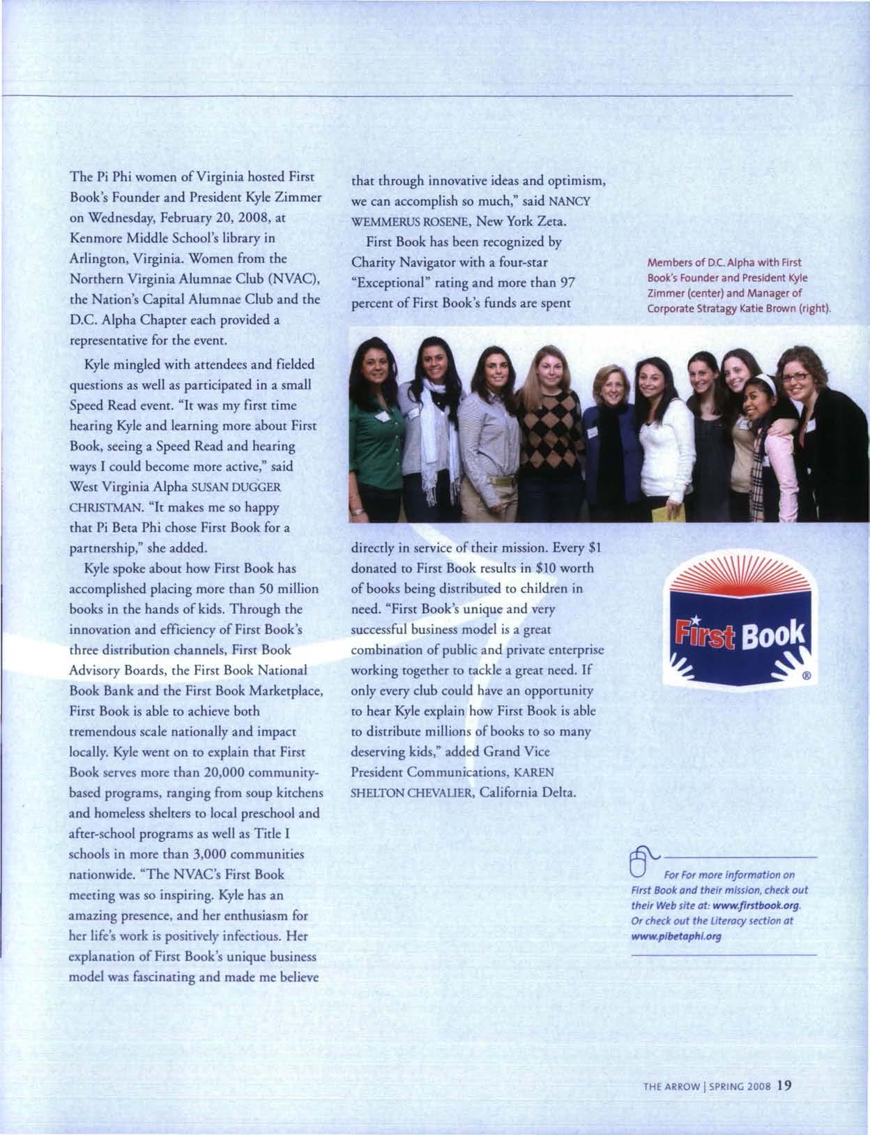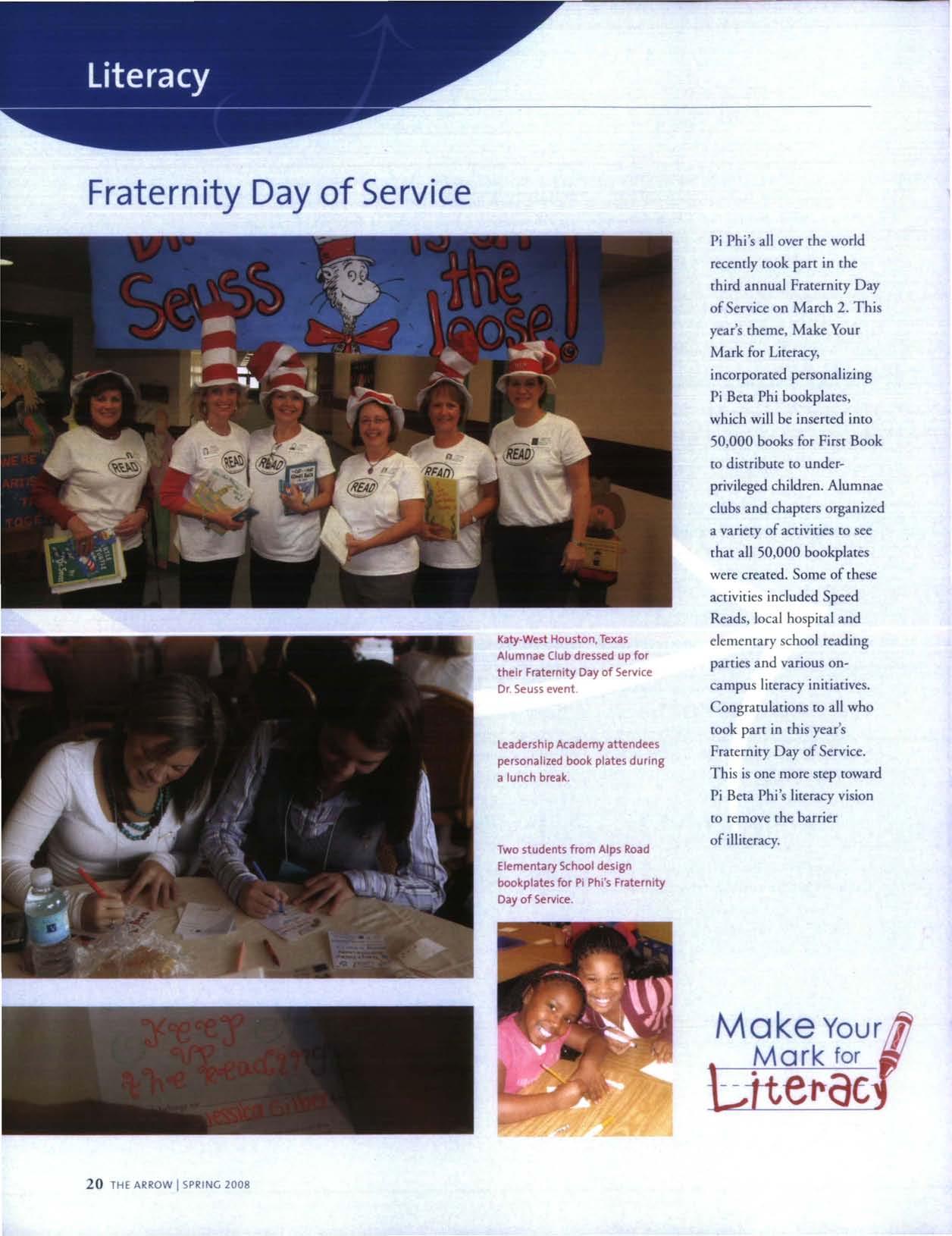 negotiations was the establishment of a settlement school. Our Fratern ity 's roots in literacy began with strong women who realized the impact Pi Beta Phi could have . They did not wait to be asked. Like the entrepreneurs featured in this issue, Emma, May and Anna turned their passion into a c tion.