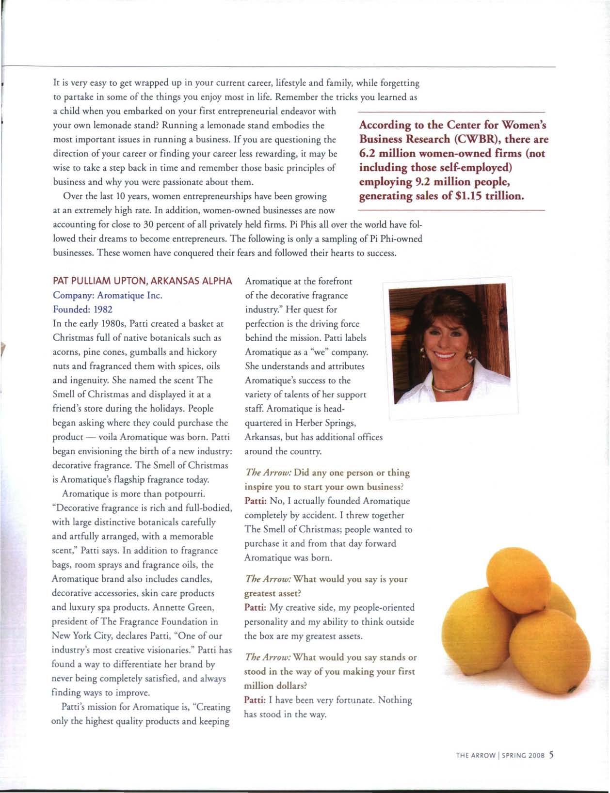 According to the Center for Women's Business Research (CWBR), there are 6.2 million women-owned firms (not including those self-employed) employing 9.2 million people, generating sales of $1.15 trillion. at an extremely high rate. In addition, women-owned businesses are now accounting for close to 30 percent of all privately held firms. Pi Phis all over the world have followed their dreams to become entrepreneurs. The following is only a sampling of Pi Phi-owned businesses These women have conquered their fears and followed their hearts to success.
