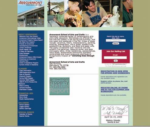 The Arrow is sorry to lose the presence of Arrowmont in this issue. Because of budget constraints, Arrowmont has decided not to purchase space. Be sure to visit www.arrowmont.com to learn more about Arrowmont events, including Pi Phi Arts Weekend April 16–19.