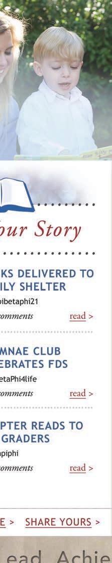 Visit www.pibetaphiliteracystory.org to access the Facebook page. Or, visit www.facebook.com/pibetaphi and click the “Read. Lead. Achieve.” icon at the top of the page.