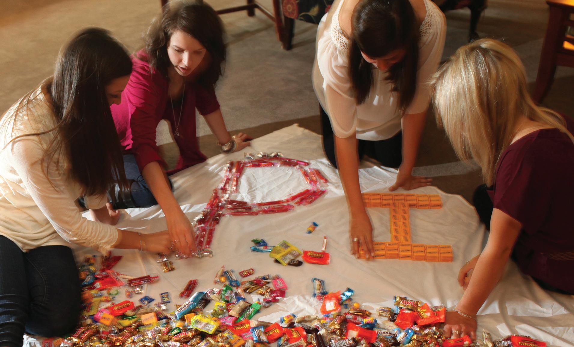 The Cookie Shine isn’t the only tradition from early Pi Phi days. The Pow Wow and the Hallowe’en celebration were also very popular. The Pow Wow was a regular informal “after meeting” gathering where women visited with each other and usually ate snacks. The Pow Wows were usually made more thrilling by faces at the windows, which proved to be those of friendly but prying Delta Tau Deltas, Betas, Phi Gams or Phi Delts. The Hallowe’en celebration was also a popular Pi Phi celebration in the late 1800s. During these events, the girls usually “dove for apples” and the telltale water soon disclosed whose bangs were naturally curly. The third celebration is the Cookie Shine, which is a distinct Pi Beta Phi institution. Much like the golden arrow badge, the Cookie Shine is perhaps one of few Pi Phi traditions all 230,000 members have had the joy of experiencing.