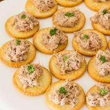 CANAPES RITZ CON RELLENOS: POLLO A 3BS C/u ,ATUN A 2.5 C/U,HUEVO DE CODORNIZ A 3 C/U, QUESO CREMA Y OREGANO A 4C/u, CREMA DE JAMON 4 C/U, CREMA DE PESTO A 4BS C/U, QUESO CREMA Y MERMELADA A 4BS