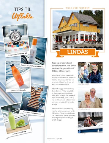Feste kai er ein velkjent stopp for båtfolk. Her får ein tak i det viktigste, drivstoff til både båt og mann. Elin og Siren Lillelid, med hunden Ronja er busett i Knarvik, med er på hyttetur i Grunnesundet. ”Der har vi nettopp fiska ein lyr på over fem kilo”, kan damene fortelje. På Lindås brygge treff vi Laila og Svein Børtveit. ”Vi har feira 44 års bryllaupsdag med god middag”, seier dei to fornøgd. ”Det er kjekt å nytte lokale tilbod”, seier Laila, og kan på det varmaste anbefale både entrecote og pepperbiff på Lindås Brygge.