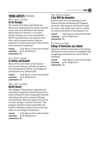 venue CofC Simons Center Recital Hall address 54 St. Philip Street admission $11 Wed., June 7, 12:00pm