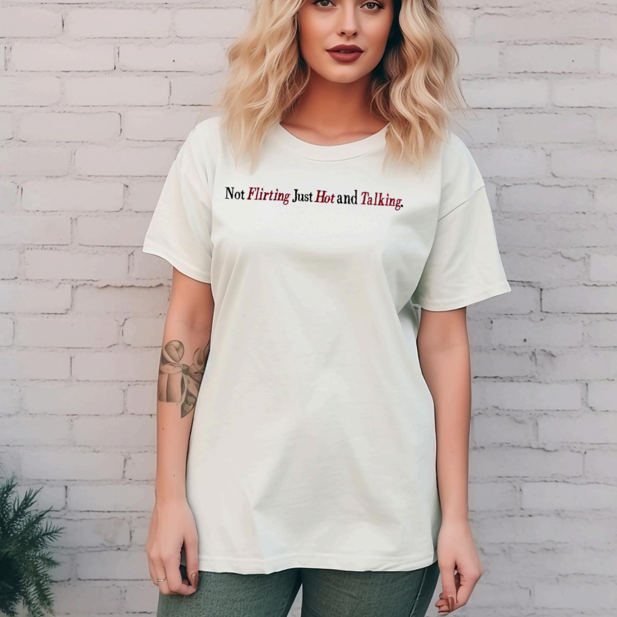 The "Not Flirting Just Hot And Talking" Shirt is a bold and empowering fashion statement that allows you to express your confidence and personal style. This shirt is designed for individuals who want to make a statement without conforming to traditional flirting norms It emphasizes the importance of self-assurance and engaging in meaningful conversations rather than solely focusing on romantic or flirtatious interactions By wearing this shirt, you can showcase your own unique personality and challenge societal expectations