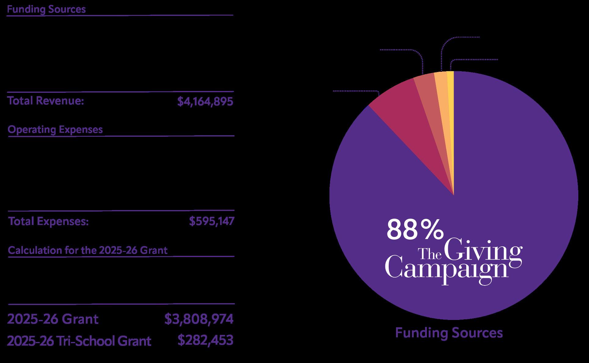 The figures above represents PEF’s unaudited operating revenue and expenses through the end of the fiscal year June 30, 2025. These charts show the funds raised and expenses incurred during the 2024-2025 academic year.