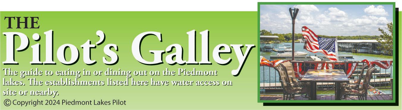What you’ll find here is a compendium of lakefront and lake-access eateries we recommend to our closest friends. This list will change and we’re always looking for your input. Call us at 704-817-8996 or visit us online at www.piedmontlakespilot.com with your comments and suggestions.