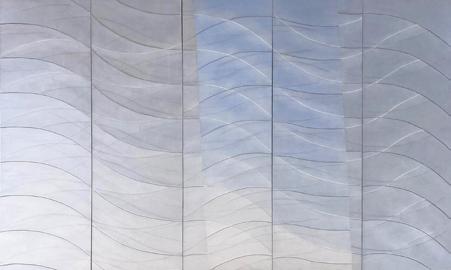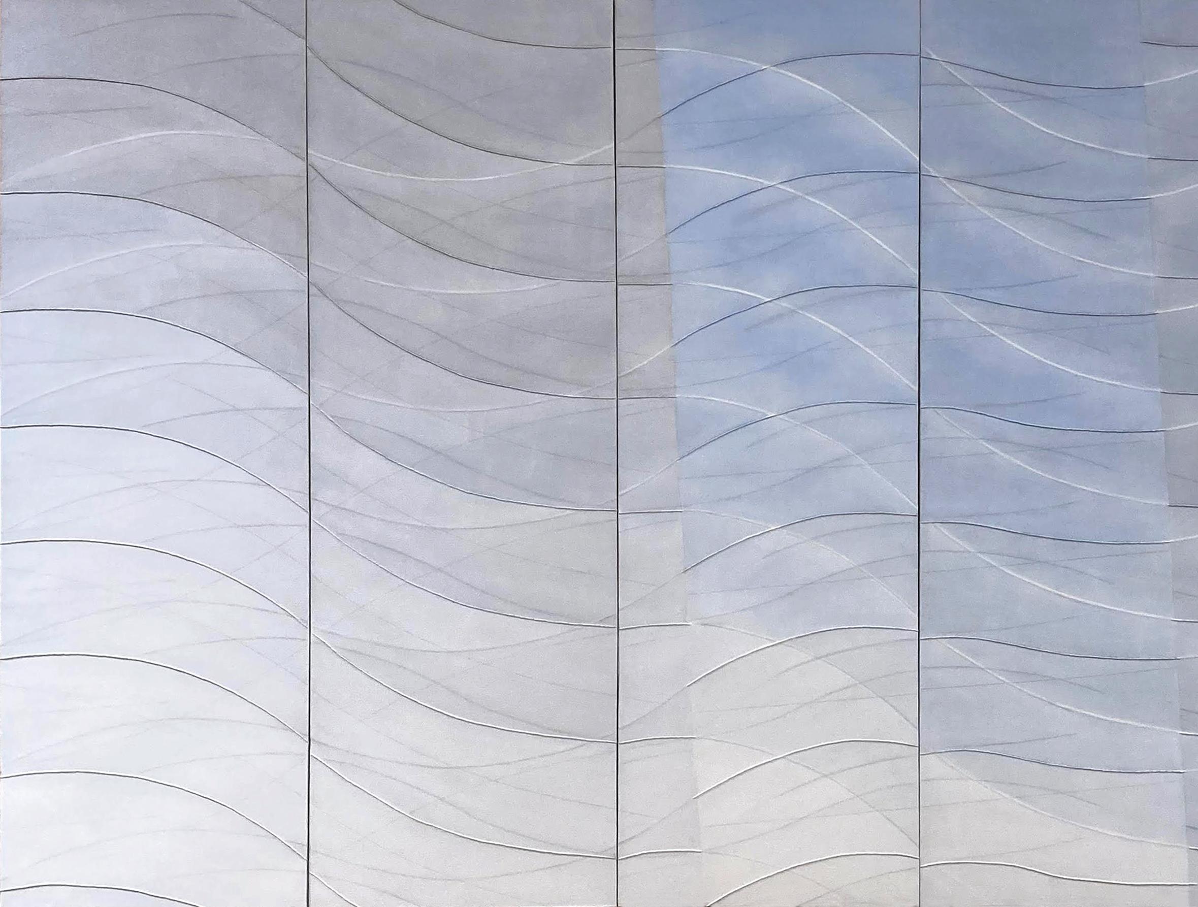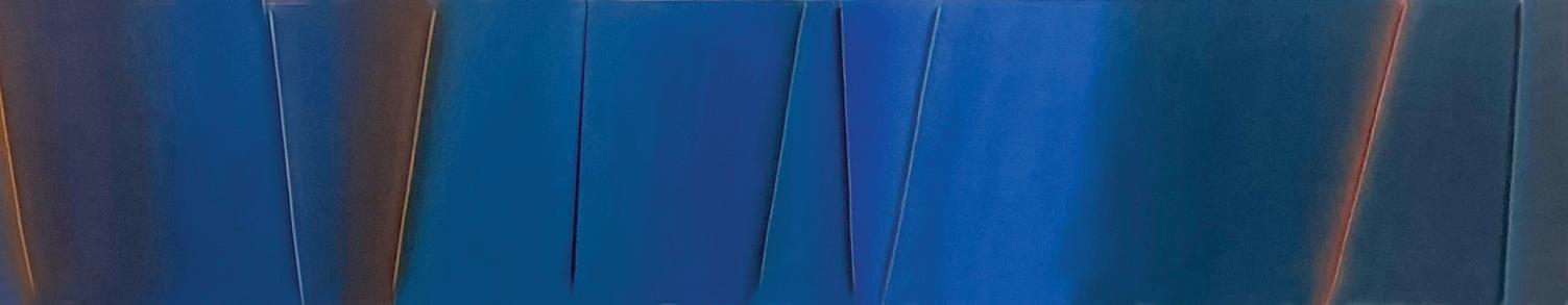 Her mesmerizing paintings offer subtle shifts of colors punctuat ed by incandescent lines or arcs which on close inspection reveal small ridges that have been meticulously stitched and painted. Stuart was featured in 18 solo museum exhibitions, received several awards including a National Endowment for the Arts Painting Fellowship, and was a professor of art at South Dakota State University.
