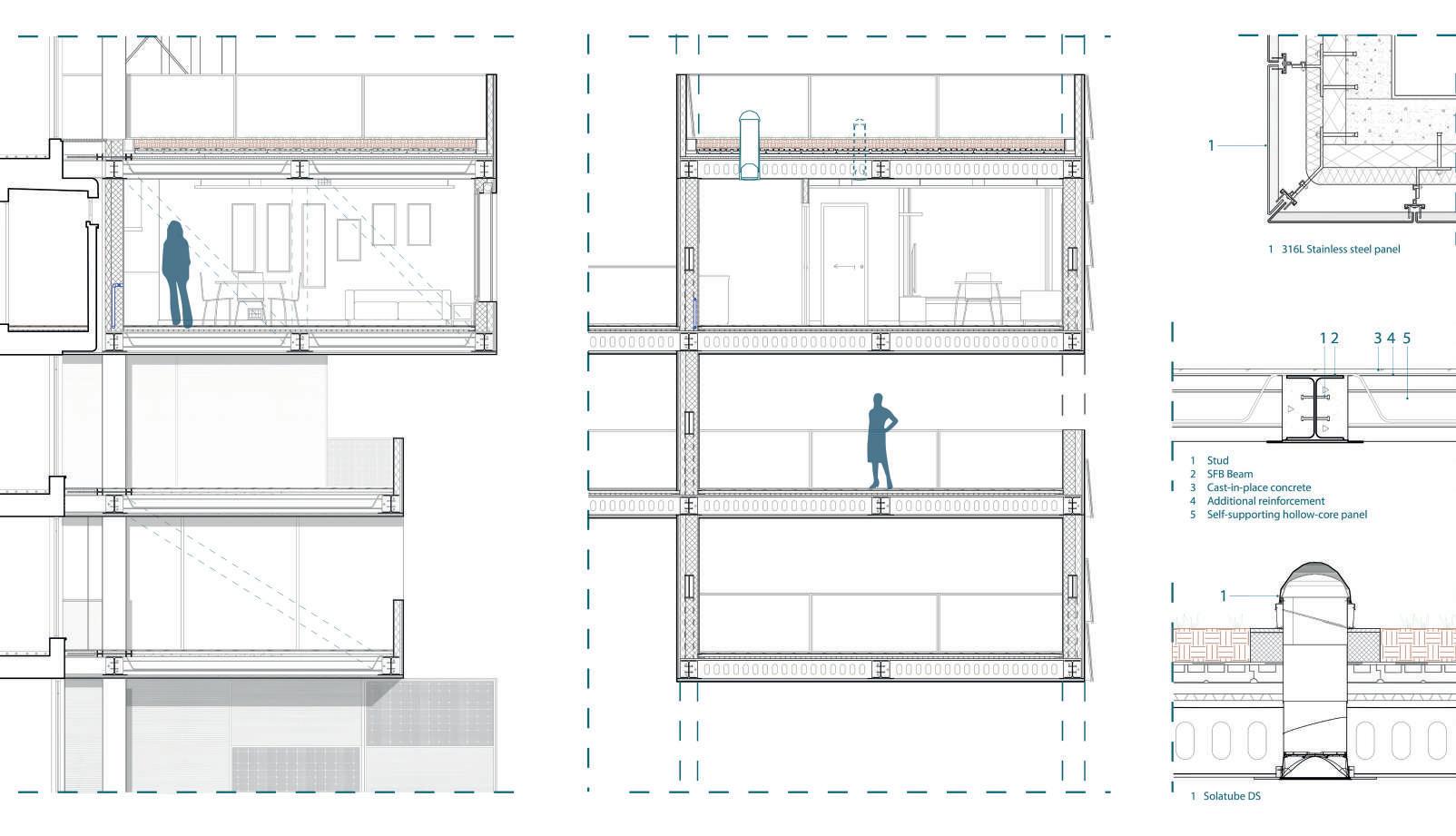 The project, developed for the Balfron Tower refurbishment competition in London, involves the renovation and functional upgrading of the historic building. The intervention envisions the creation of a mixed community composed of private homeowners residing within the tower’s original structure and tenants accommodated in new housing units located at the balcony levels, positioned every three floors. This approach aims to address the housing shortage by implementing social housing solutions. The project also includes the addition of a panoramic elevator connecting the ground floor with the upper levels designated for public and cultural functions, such as a restaurant and a space dedicated to artistic activities. The proposal seeks to revitalize the building’s social and collective potential while preserving its architectural identity.